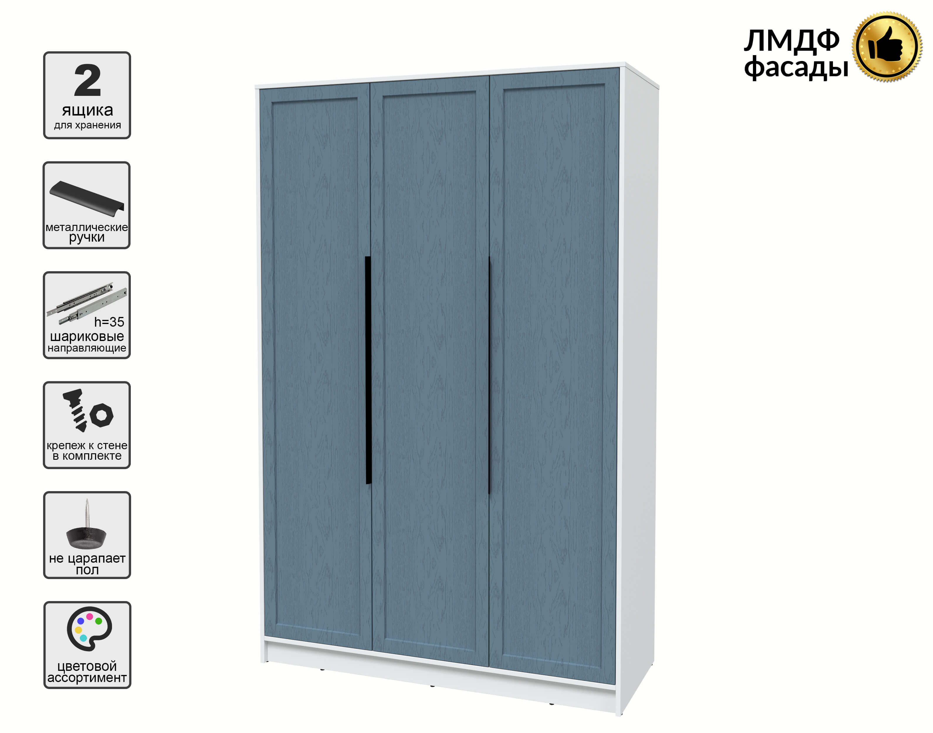 Шкаф распашной Тренд КТ-Ш3 (Белый платинум ЛДСП/ Дуб лазурный ЛМДФ) Ш1360 В2128 Г547