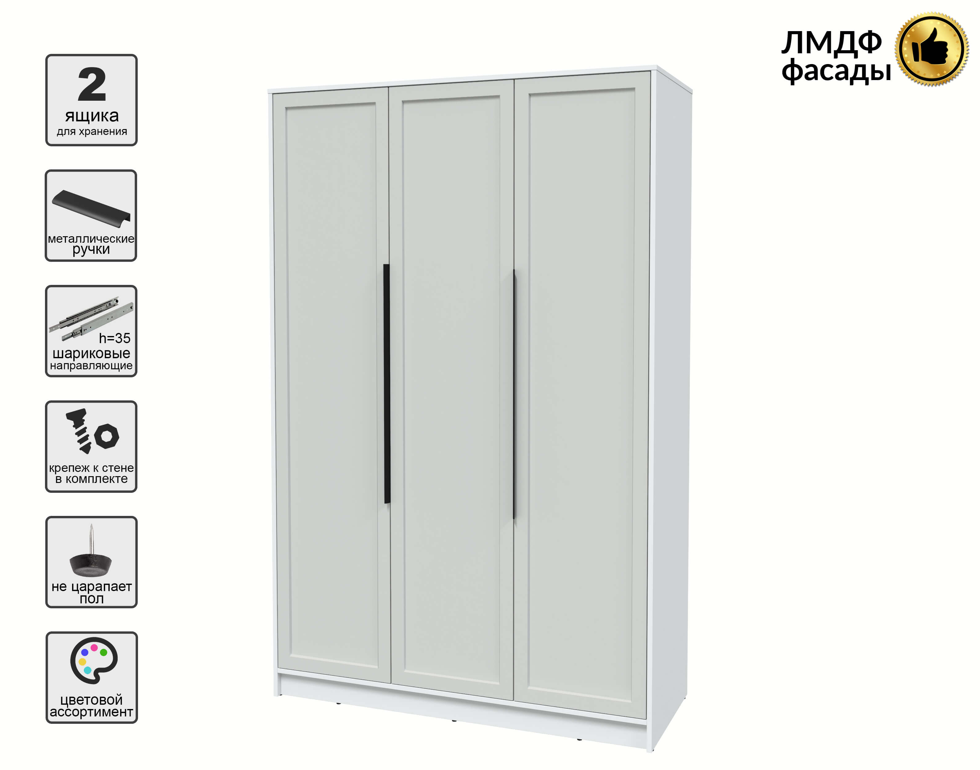 Шкаф распашной Тренд КТ-Ш3 (Белый платинум ЛДСП/ Грэй ЛМДФ) Ш1360 В2128 Г547