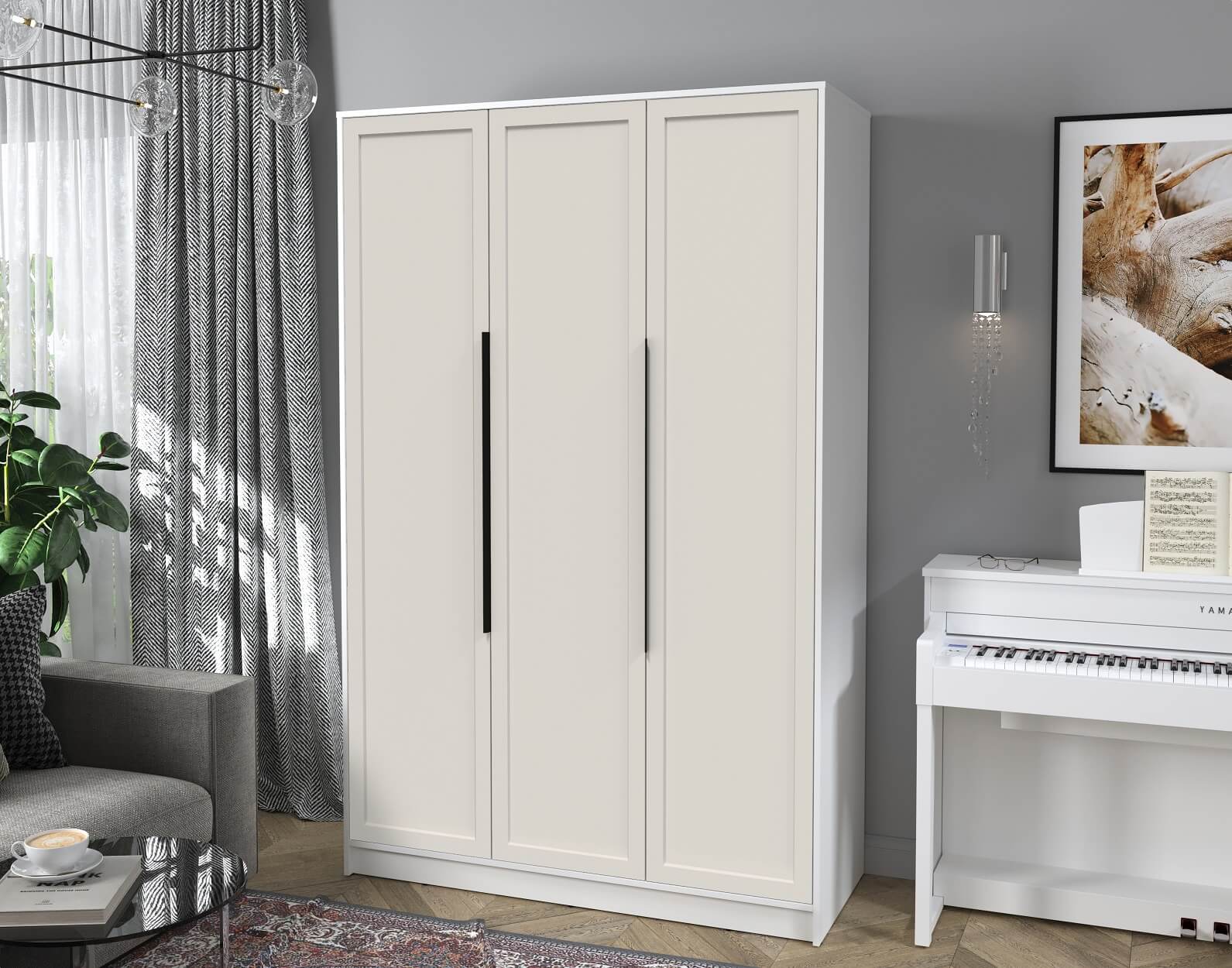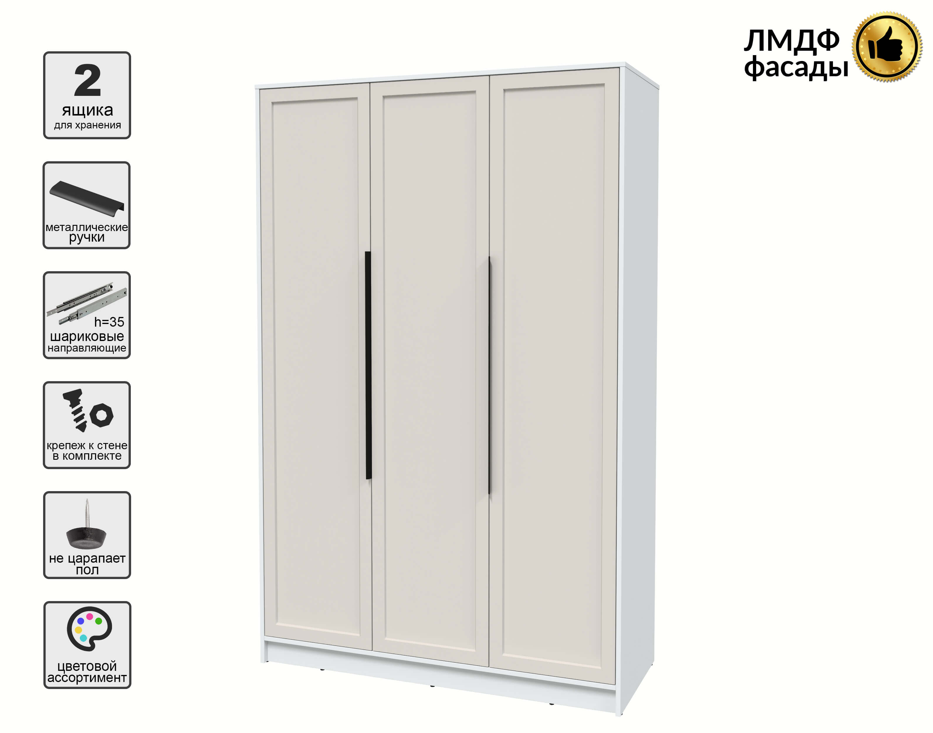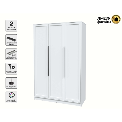 Шкаф распашной Тренд КТ-Ш3 (Белый платинум ЛДСП/ Кашемир ЛМДФ) Ш1360 В2128 Г547