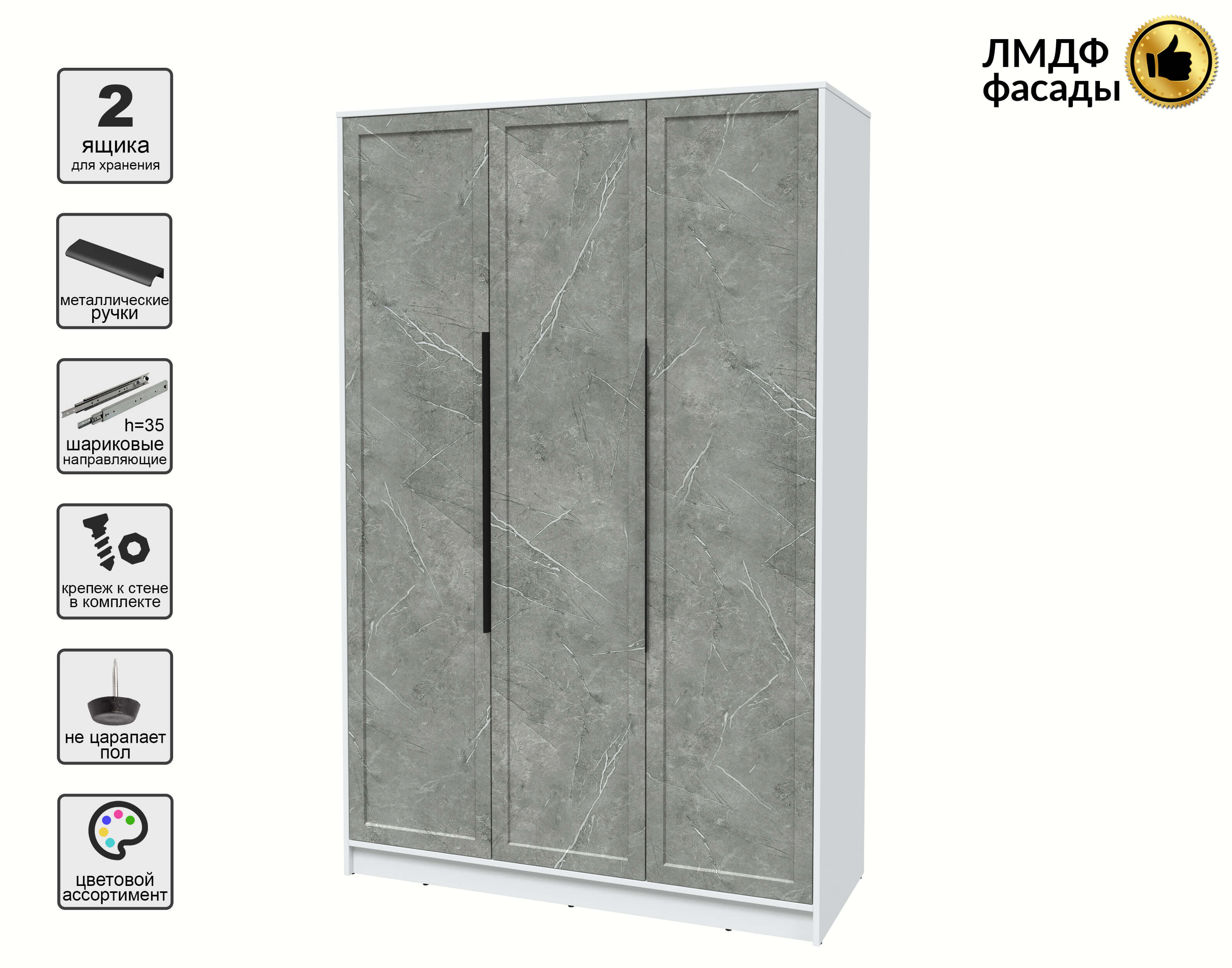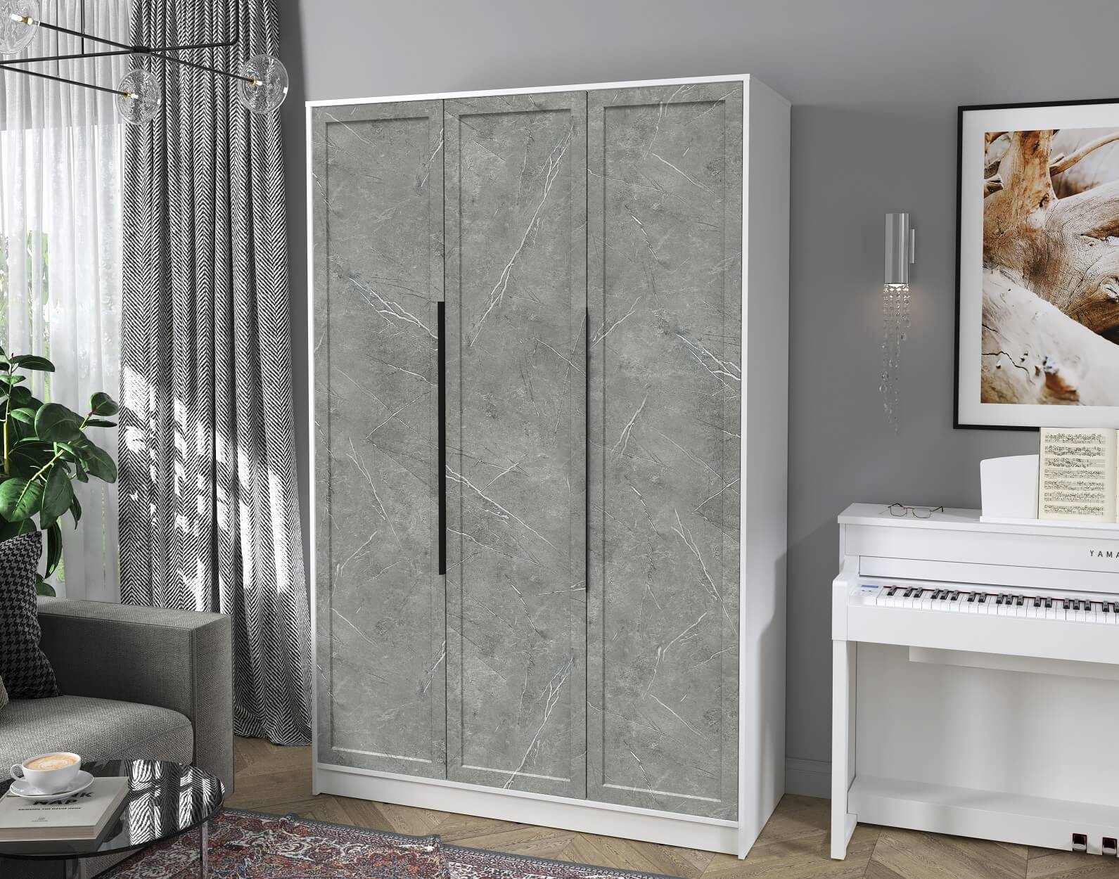 Шкаф распашной Тренд КТ-Ш3 (Белый платинум ЛДСП/ Керамика ЛМДФ) Ш1360 В2128 Г547
