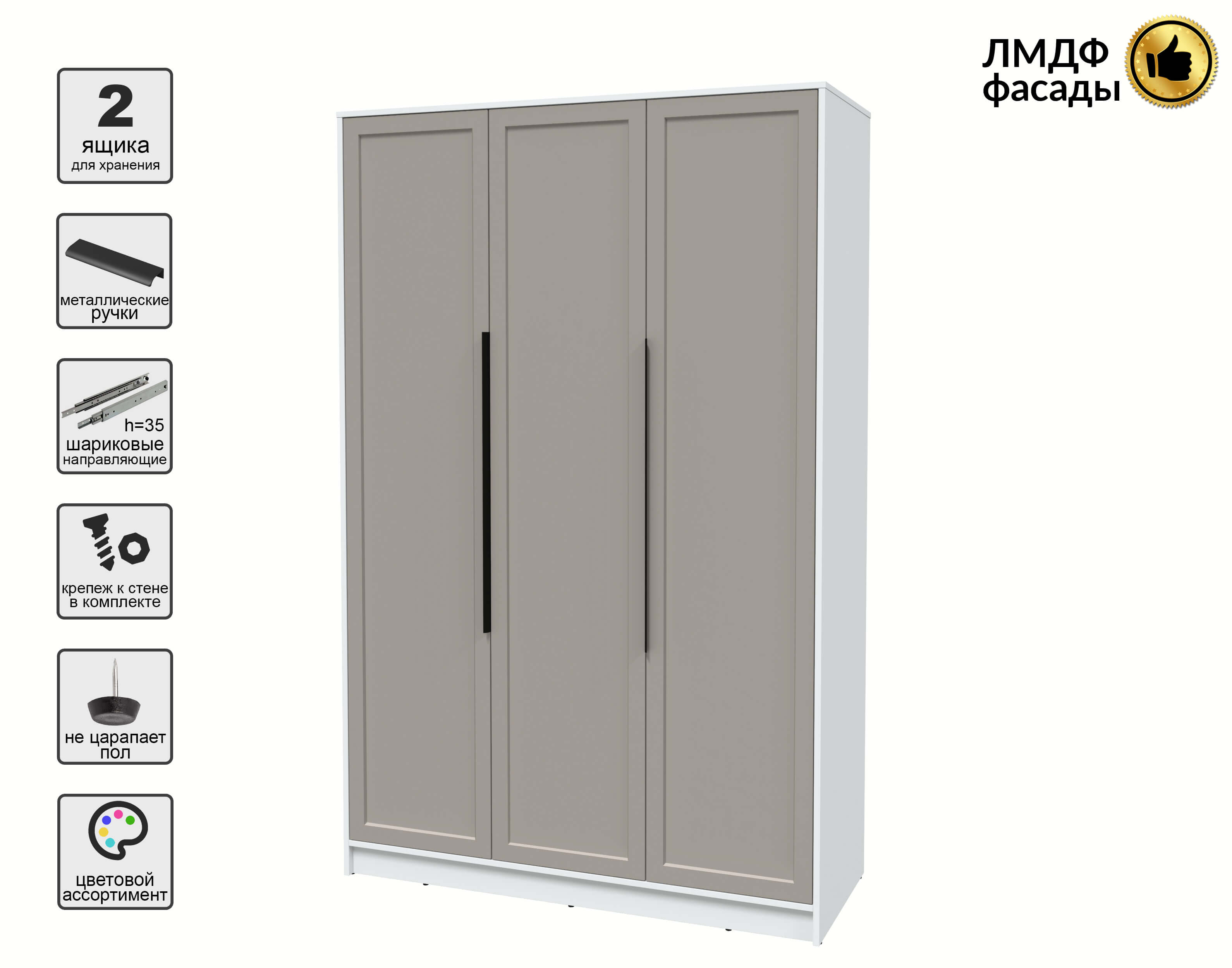 Шкаф распашной Тренд КТ-Ш3 (Белый платинум ЛДСП/ Луна ЛМДФ) Ш1360 В2128 Г547