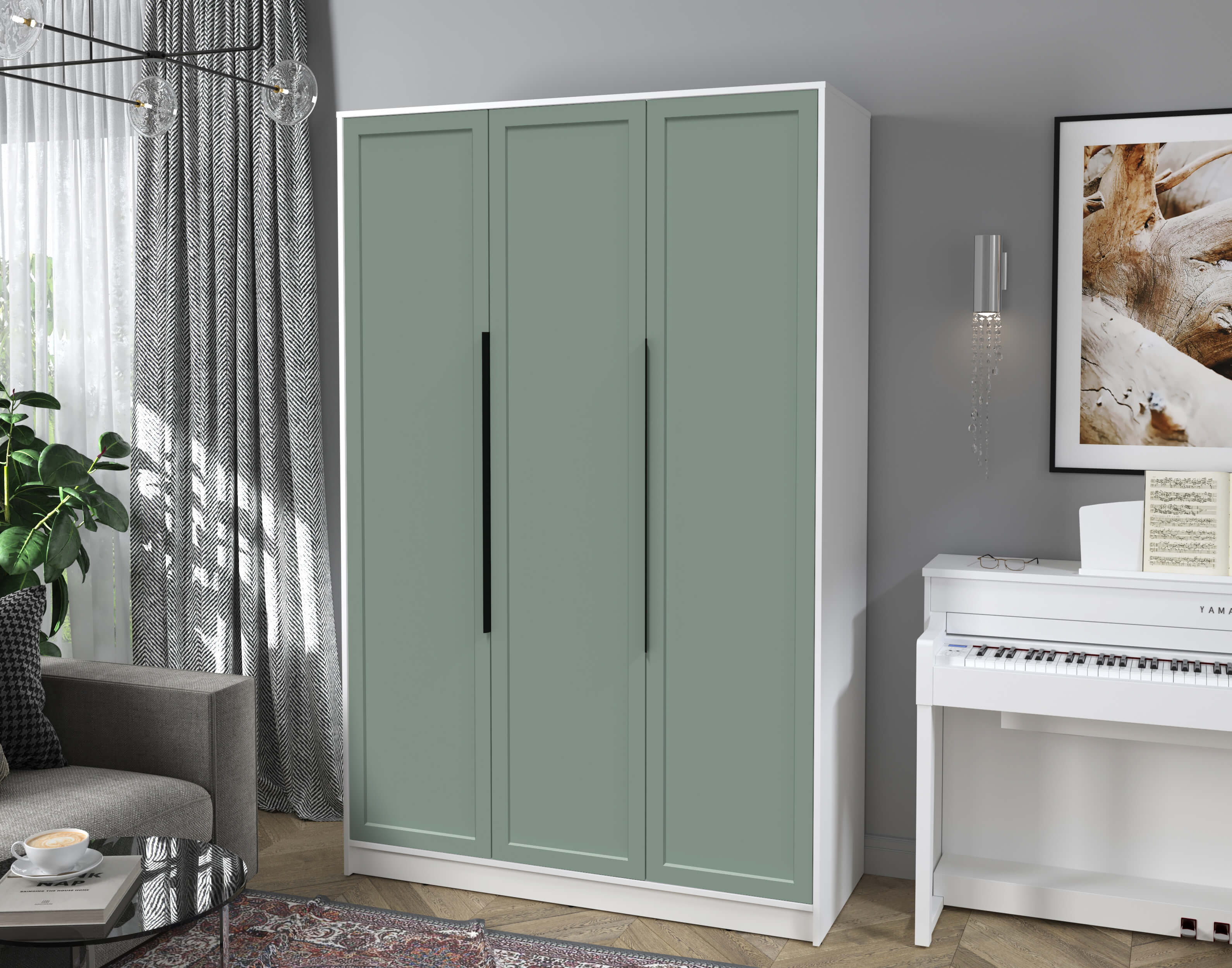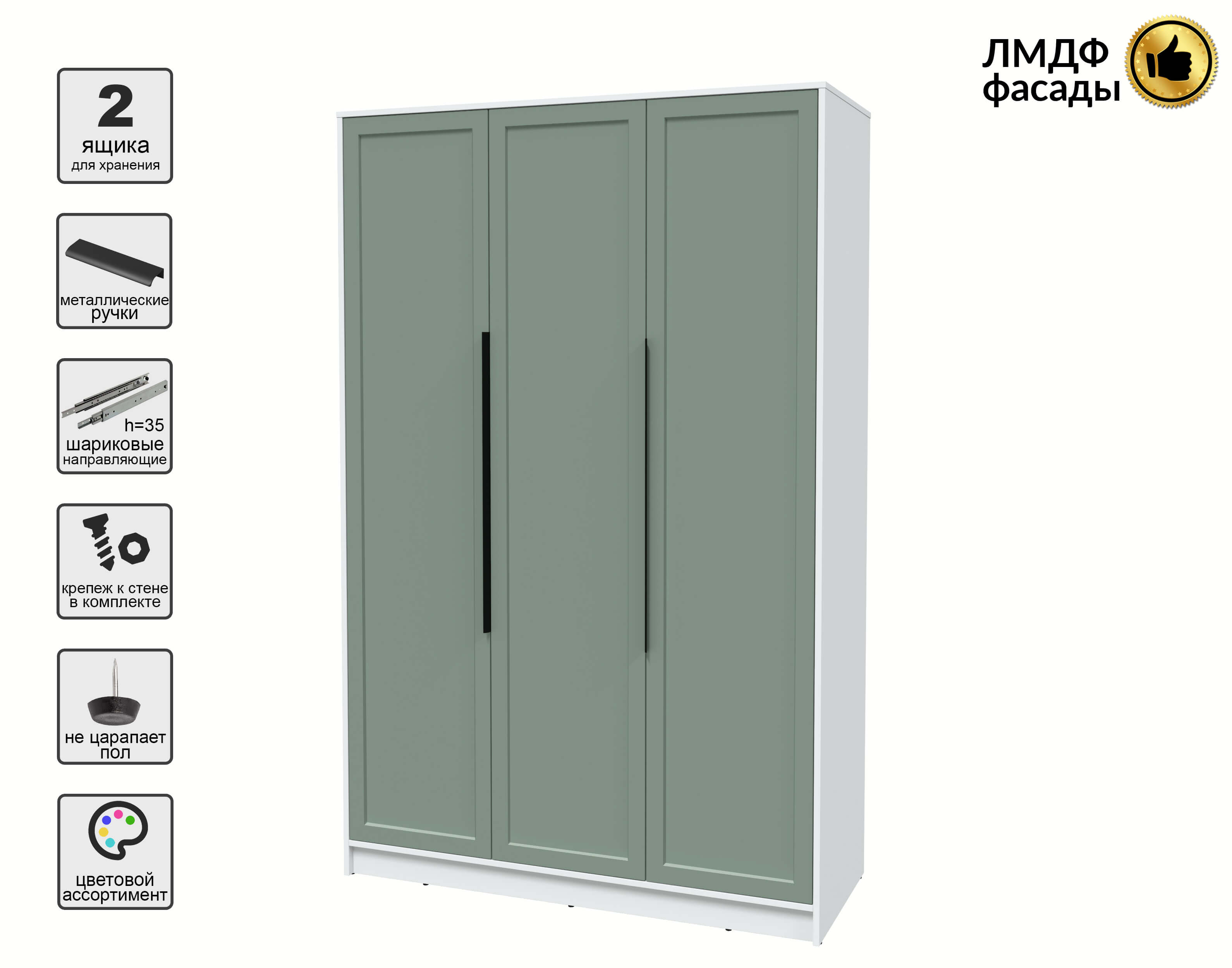Шкаф распашной Тренд КТ-Ш3 (Белый платинум ЛДСП/ Мята ЛМДФ) Ш1360 В2128 Г547