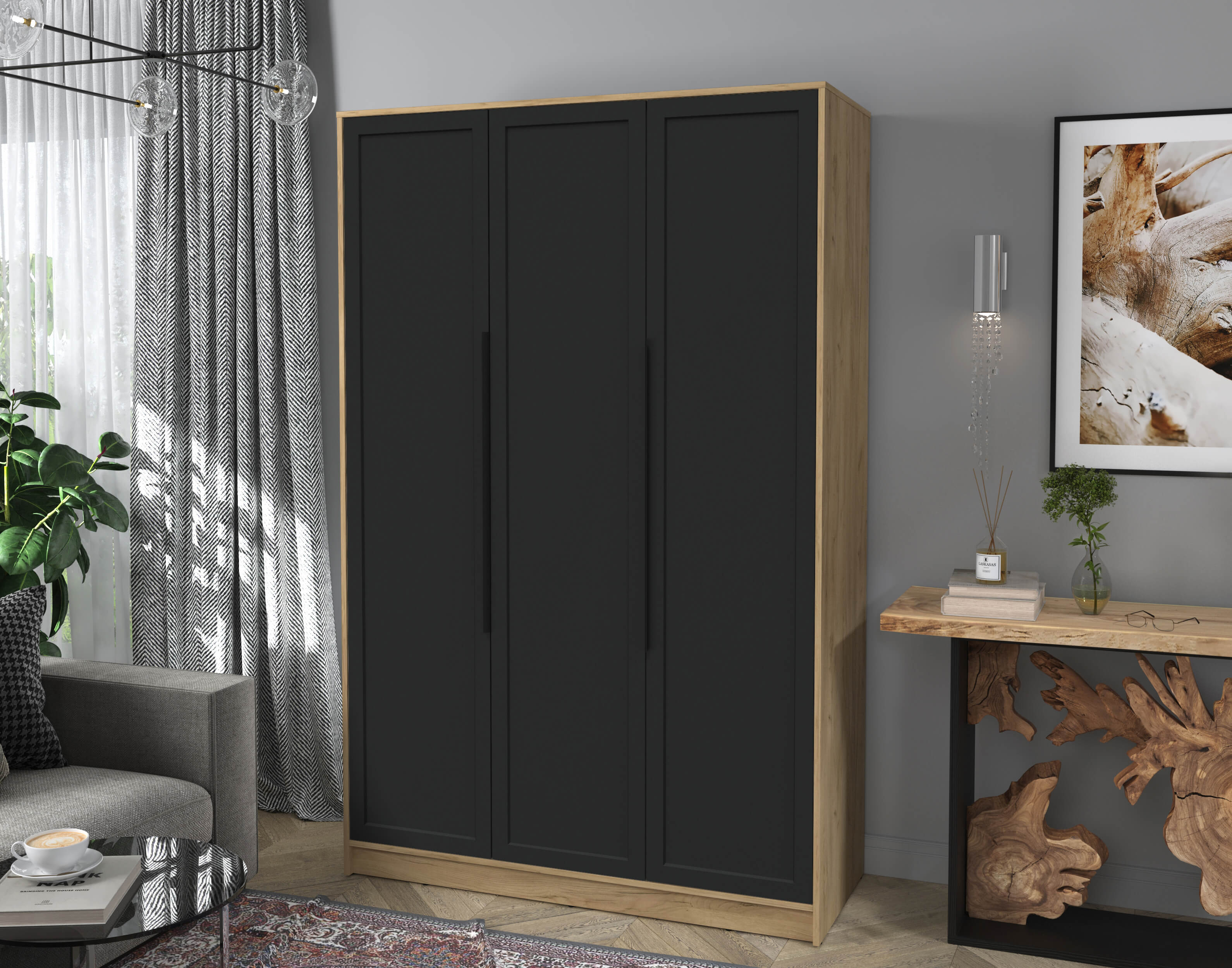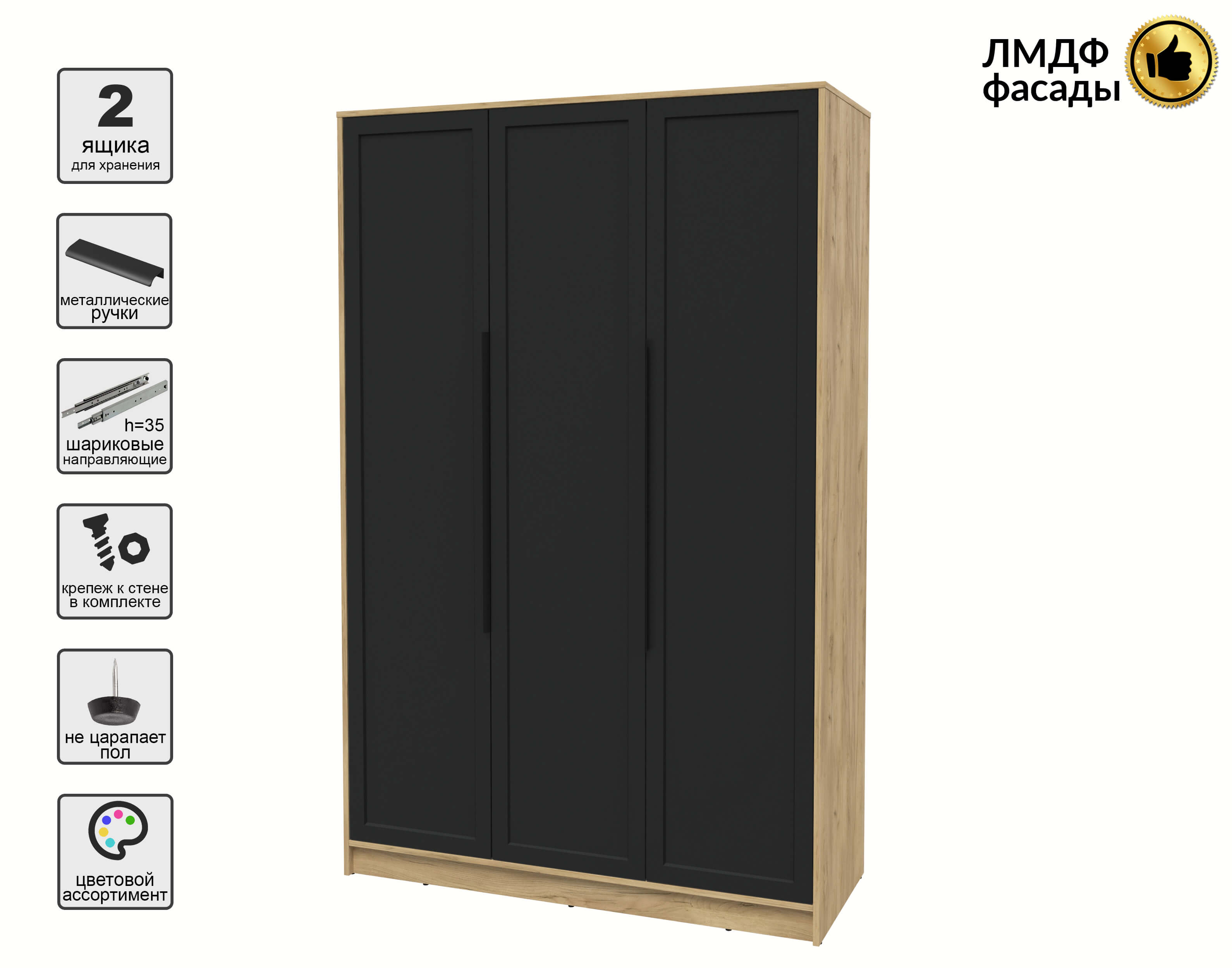 Шкаф распашной Тренд КТ-Ш3 (Дуб золотой ЛДСП/ Черный ЛМДФ) Ш1360 В2128 Г547