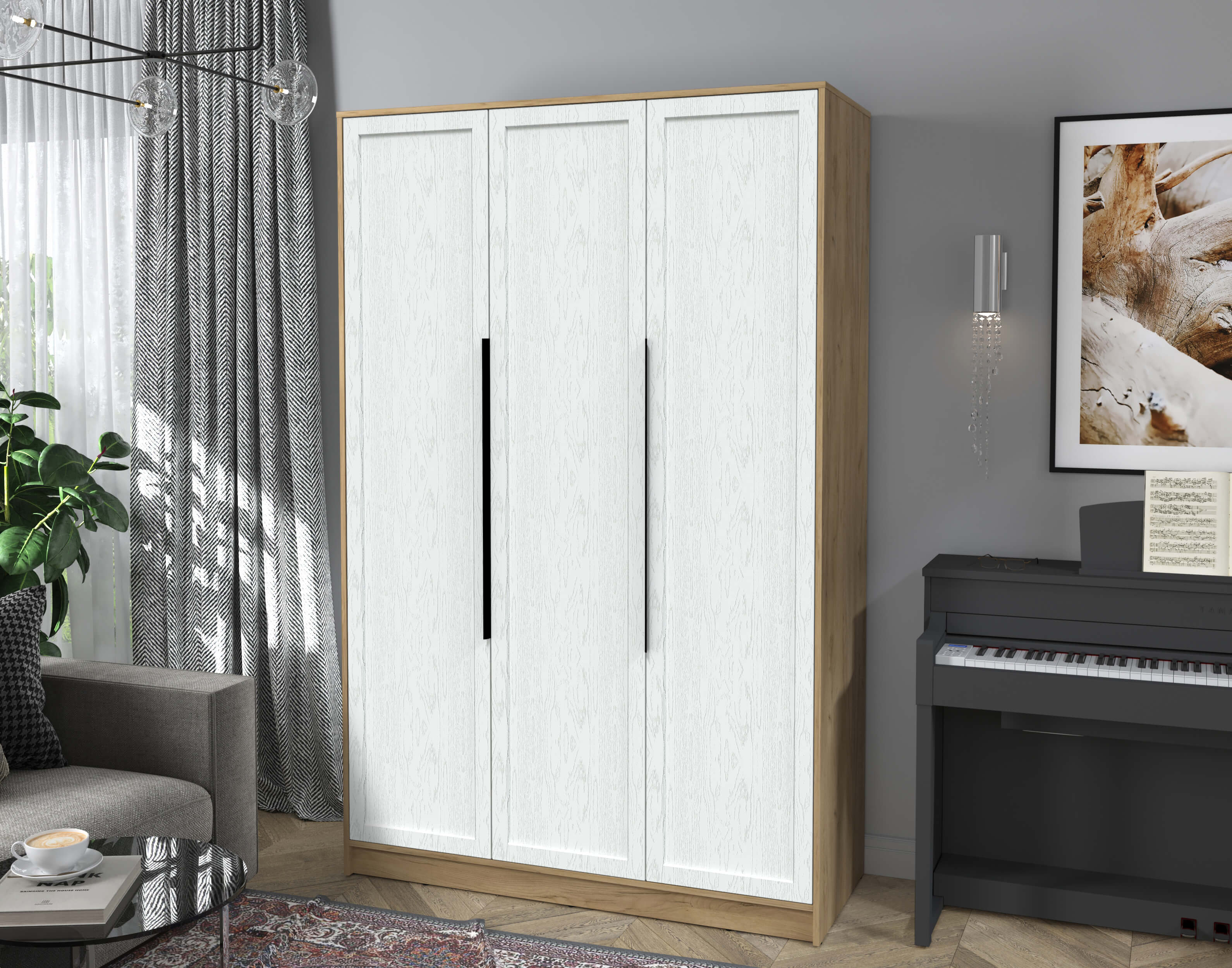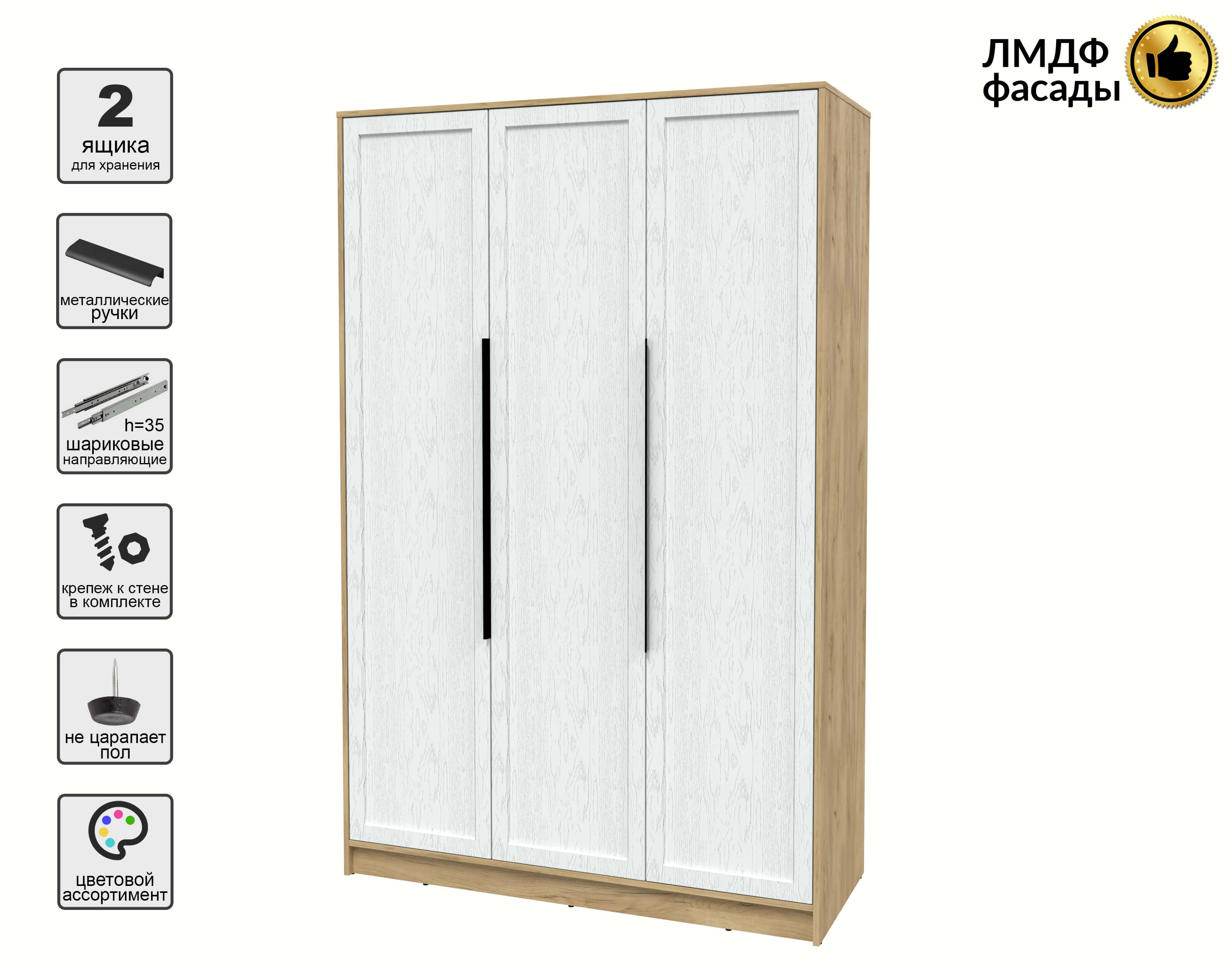 Шкаф распашной Тренд КТ-Ш3 (Дуб золотой ЛДСП/ Дуб полярный ЛМДФ) Ш1360 В2128 Г547