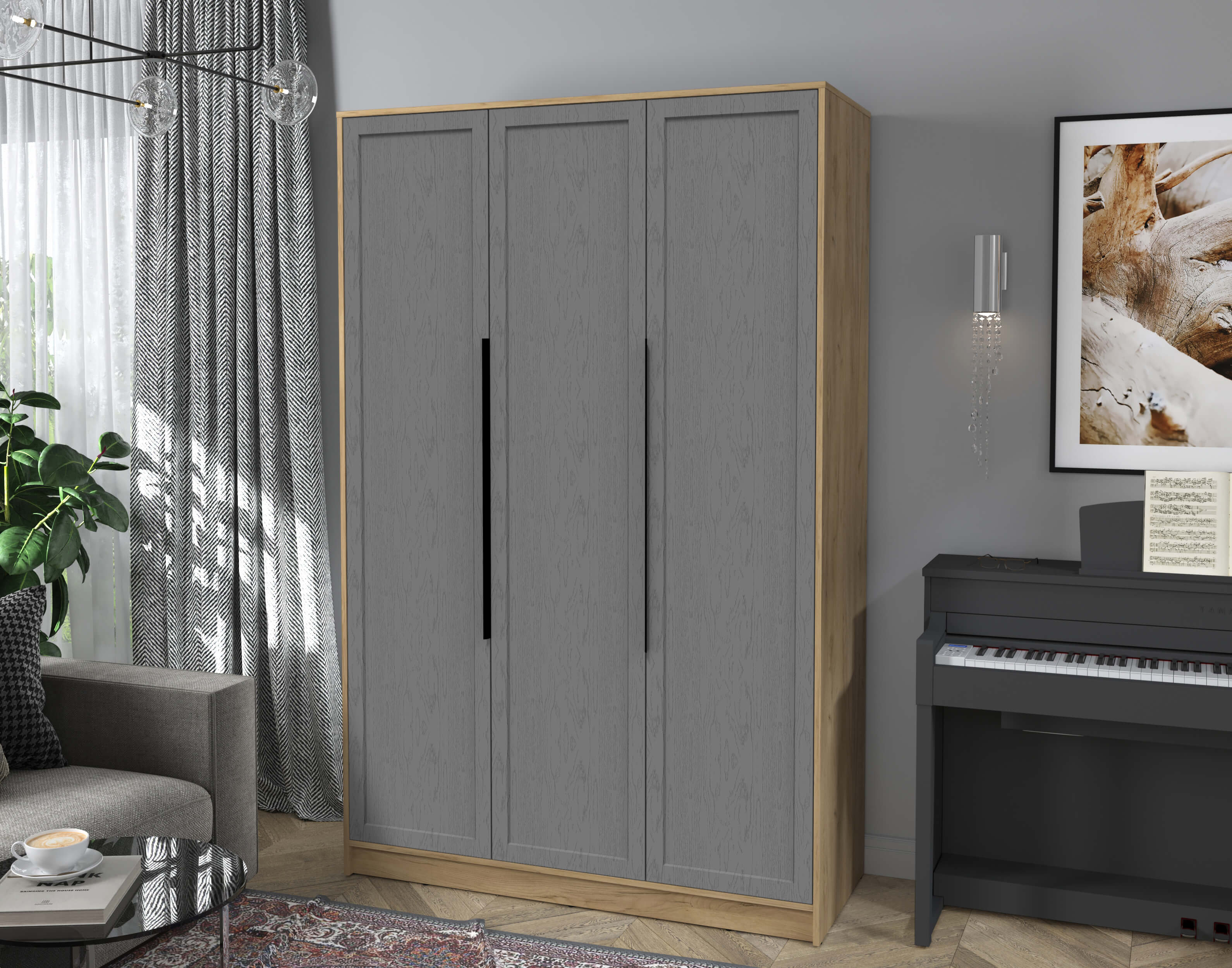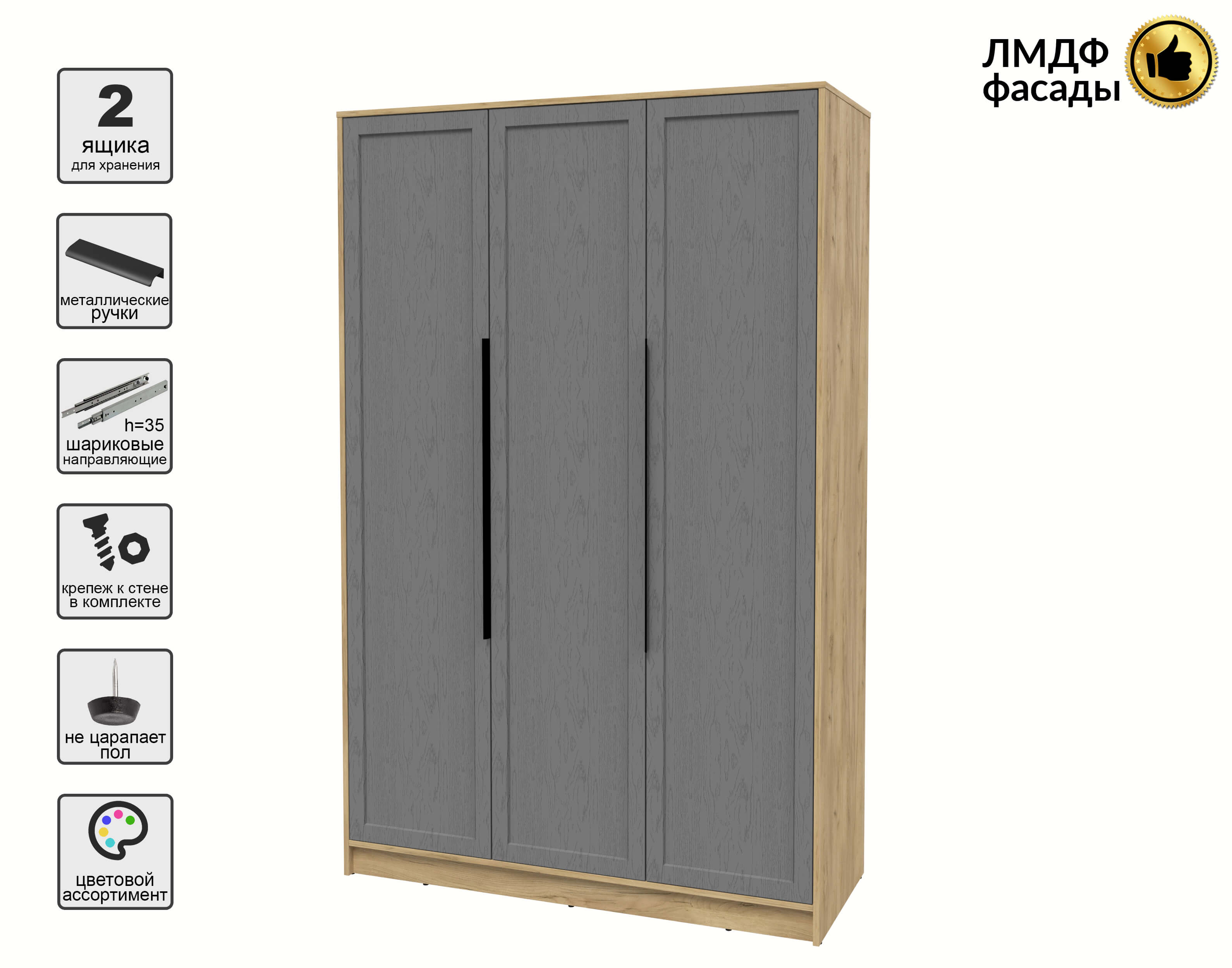 Шкаф распашной Тренд КТ-Ш3 (Дуб золотой ЛДСП/ Дуб серый ЛМДФ) Ш1360 В2128 Г547