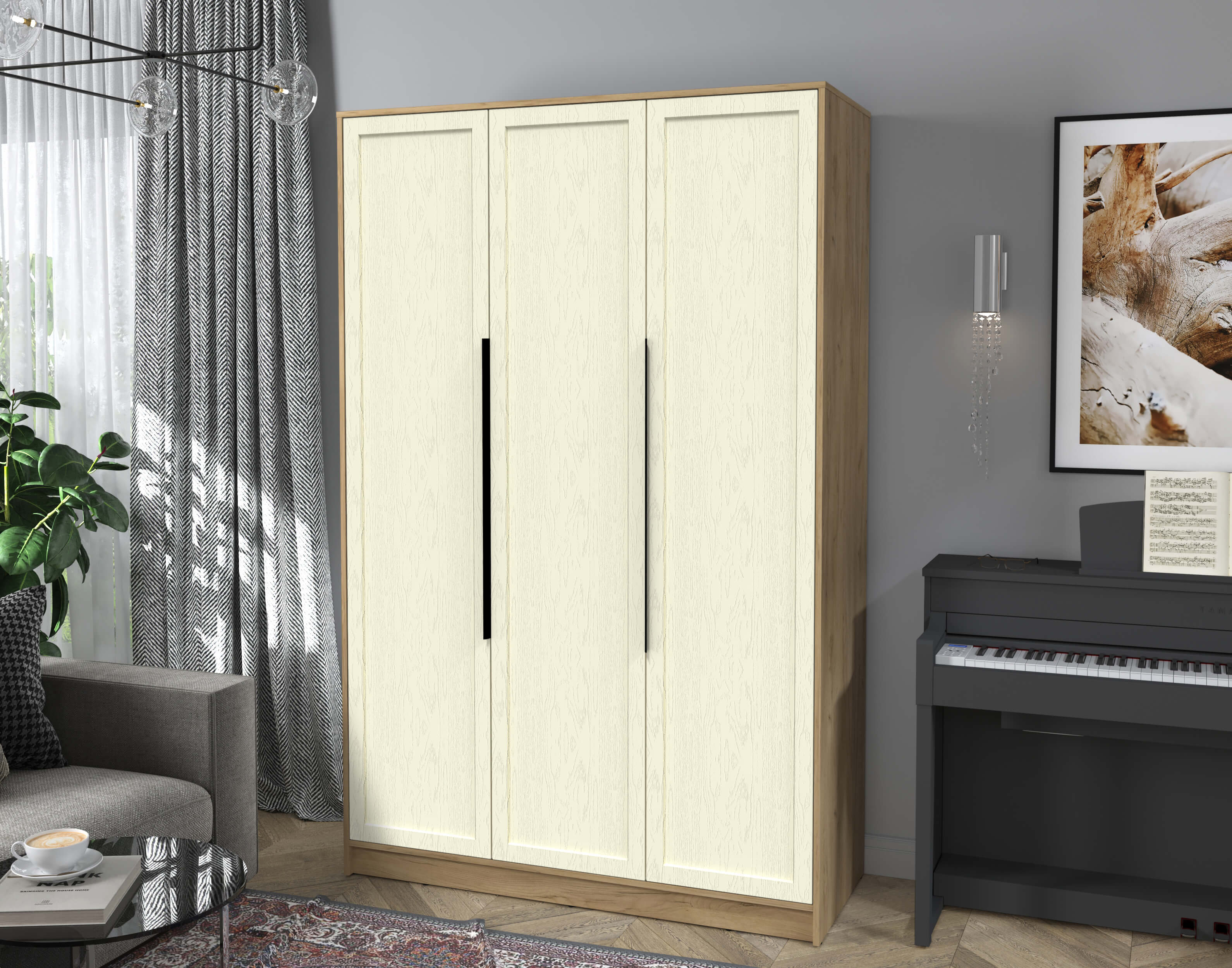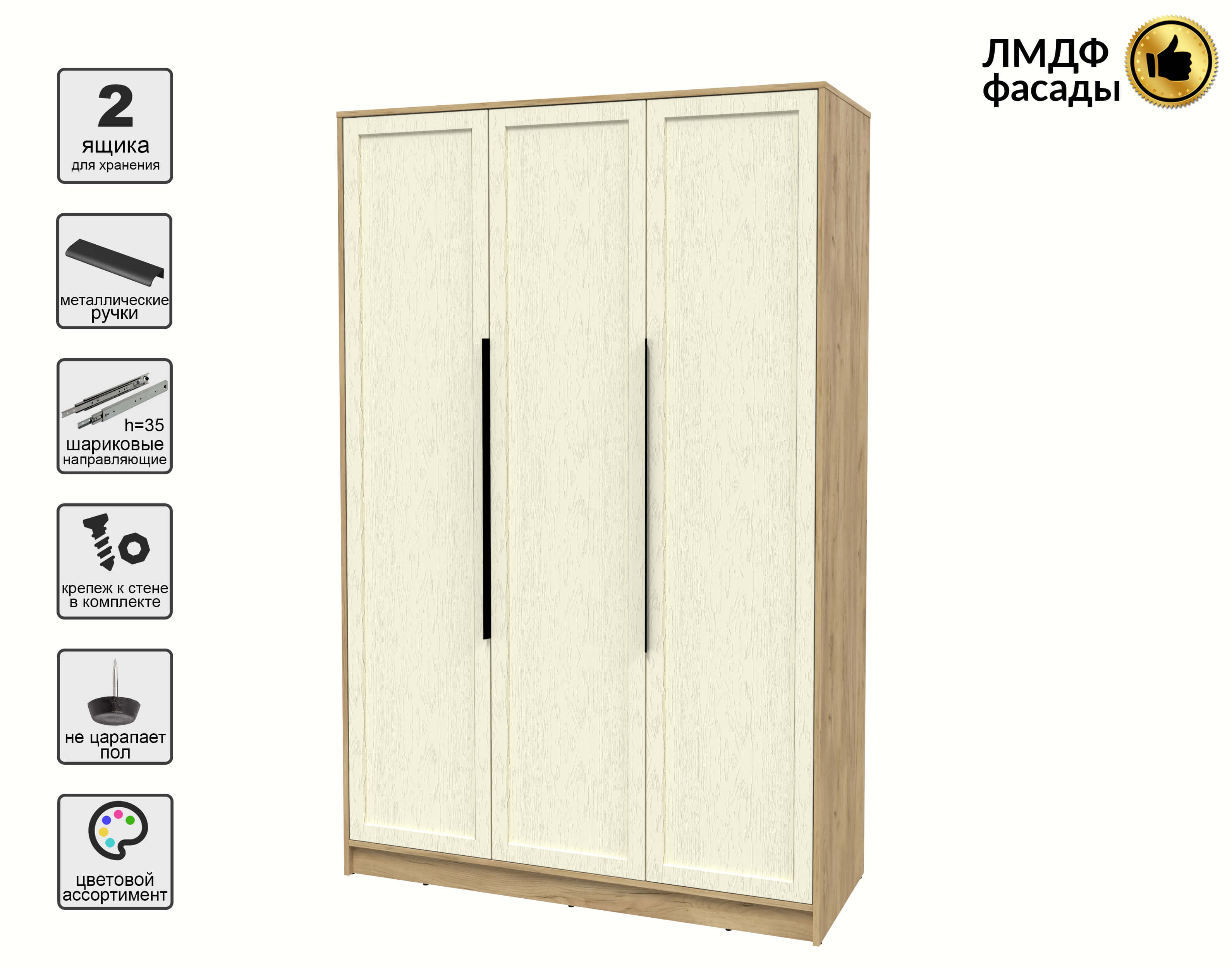 Шкаф распашной Тренд КТ-Ш3 (Дуб золотой ЛДСП/ Дуб снежный ЛМДФ) Ш1360 В2128 Г547