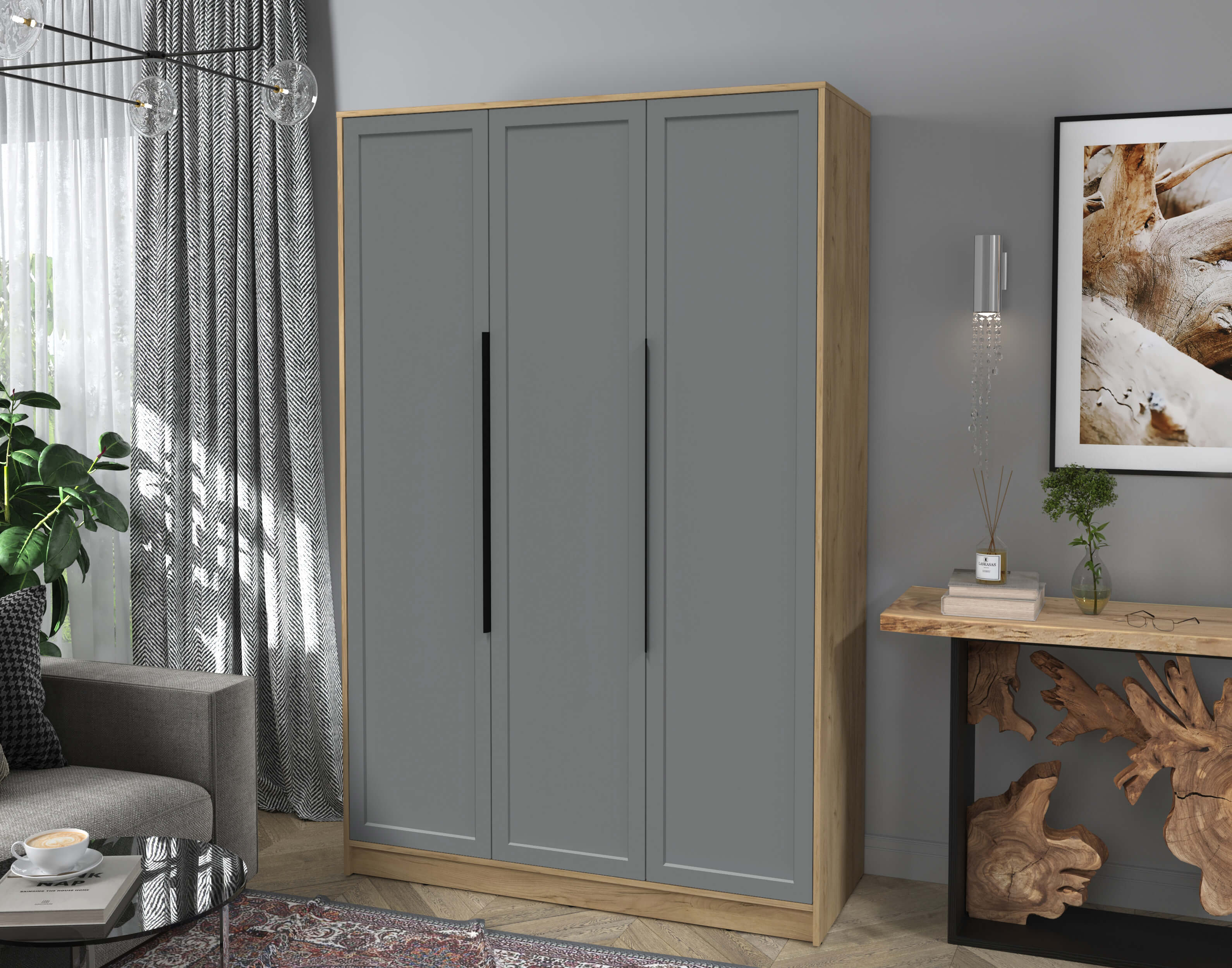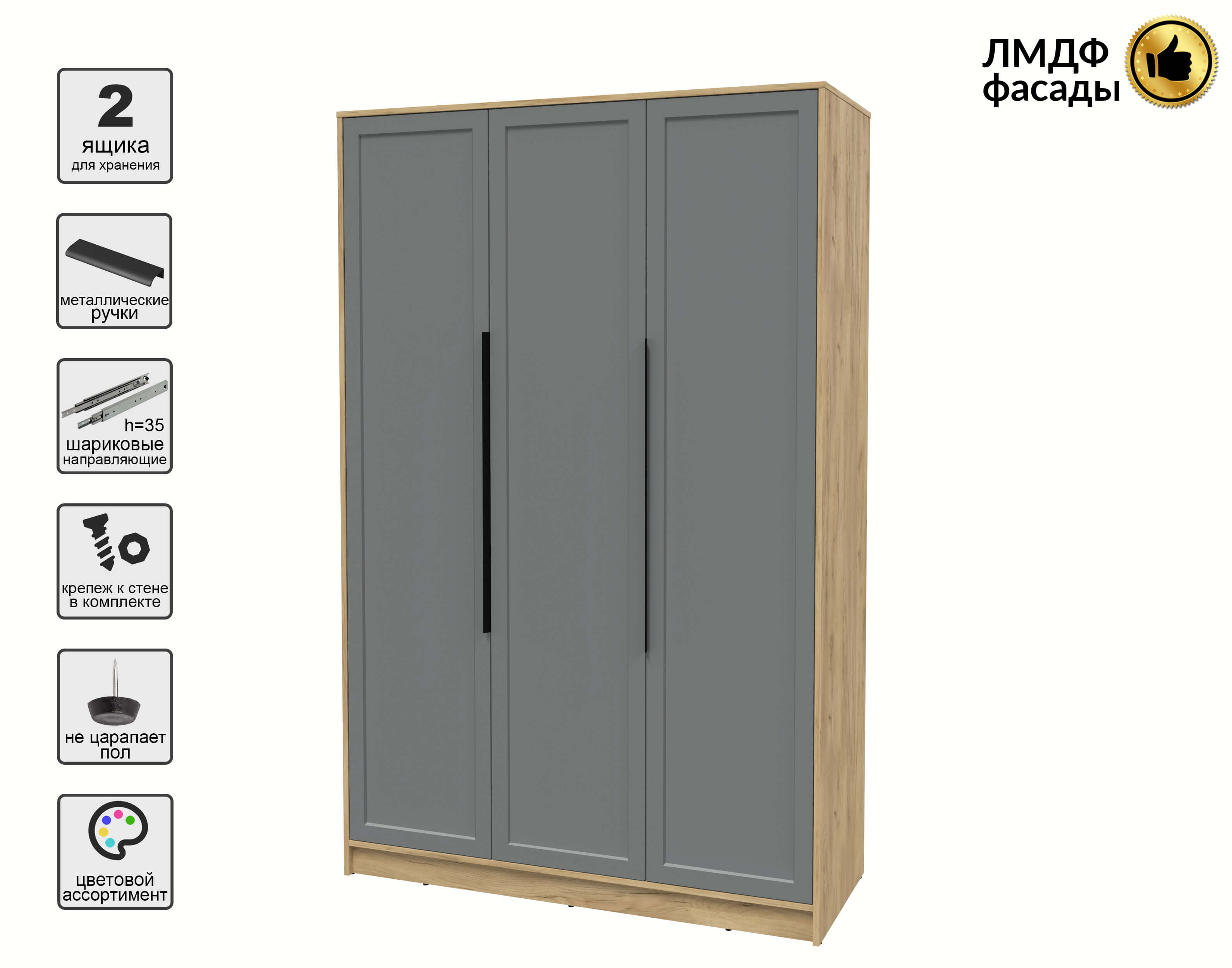 Шкаф распашной Тренд КТ-Ш3 (Дуб золотой ЛДСП/ Серый ЛМДФ) Ш1360 В2128 Г547
