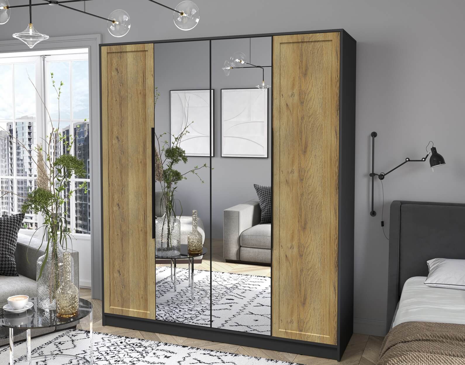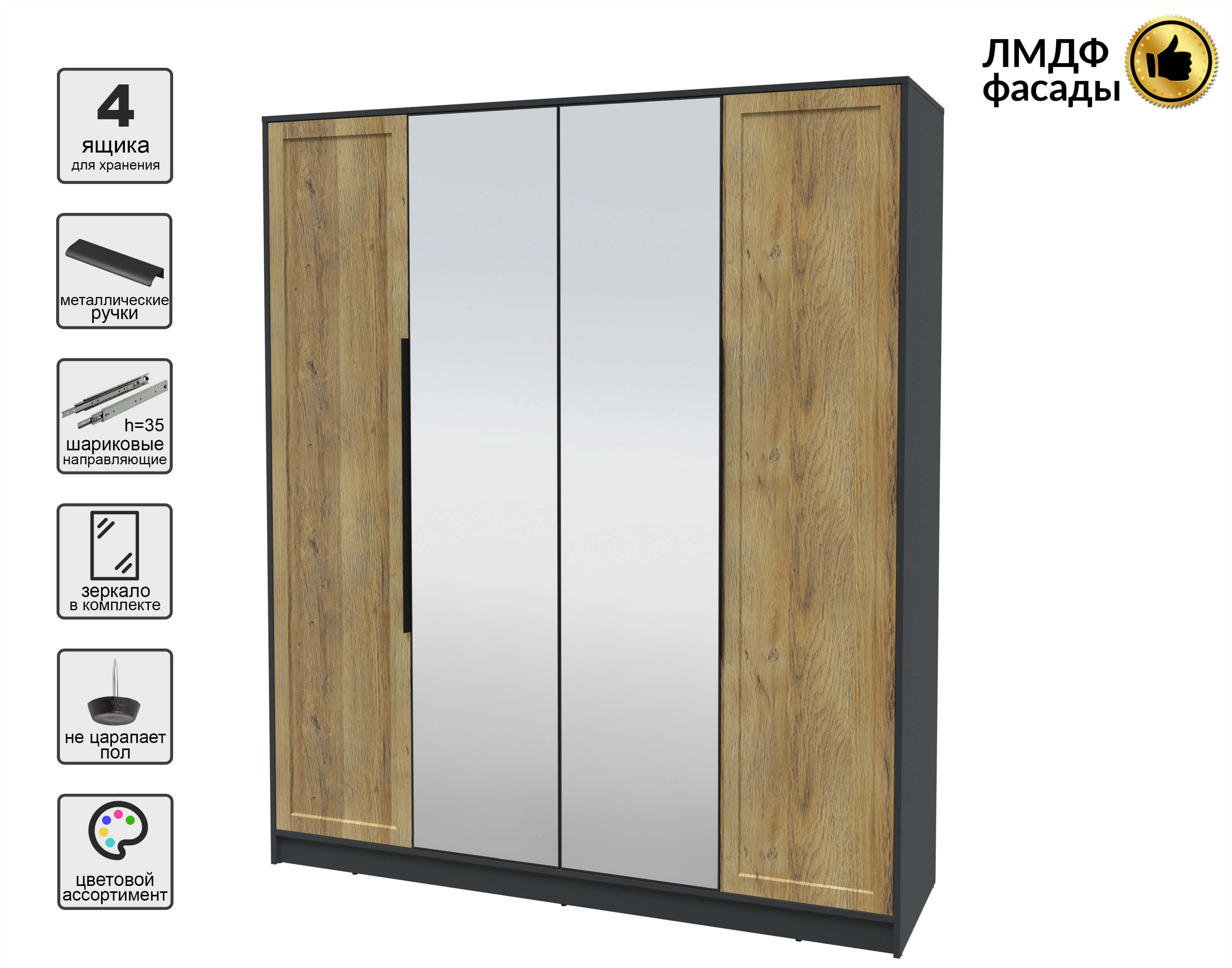 Шкаф распашной Тренд КТ-Ш4 (з) (Антрацит ЛДСП/ Дуб вотан ЛМДФ) Ш1800 В2128 Г547