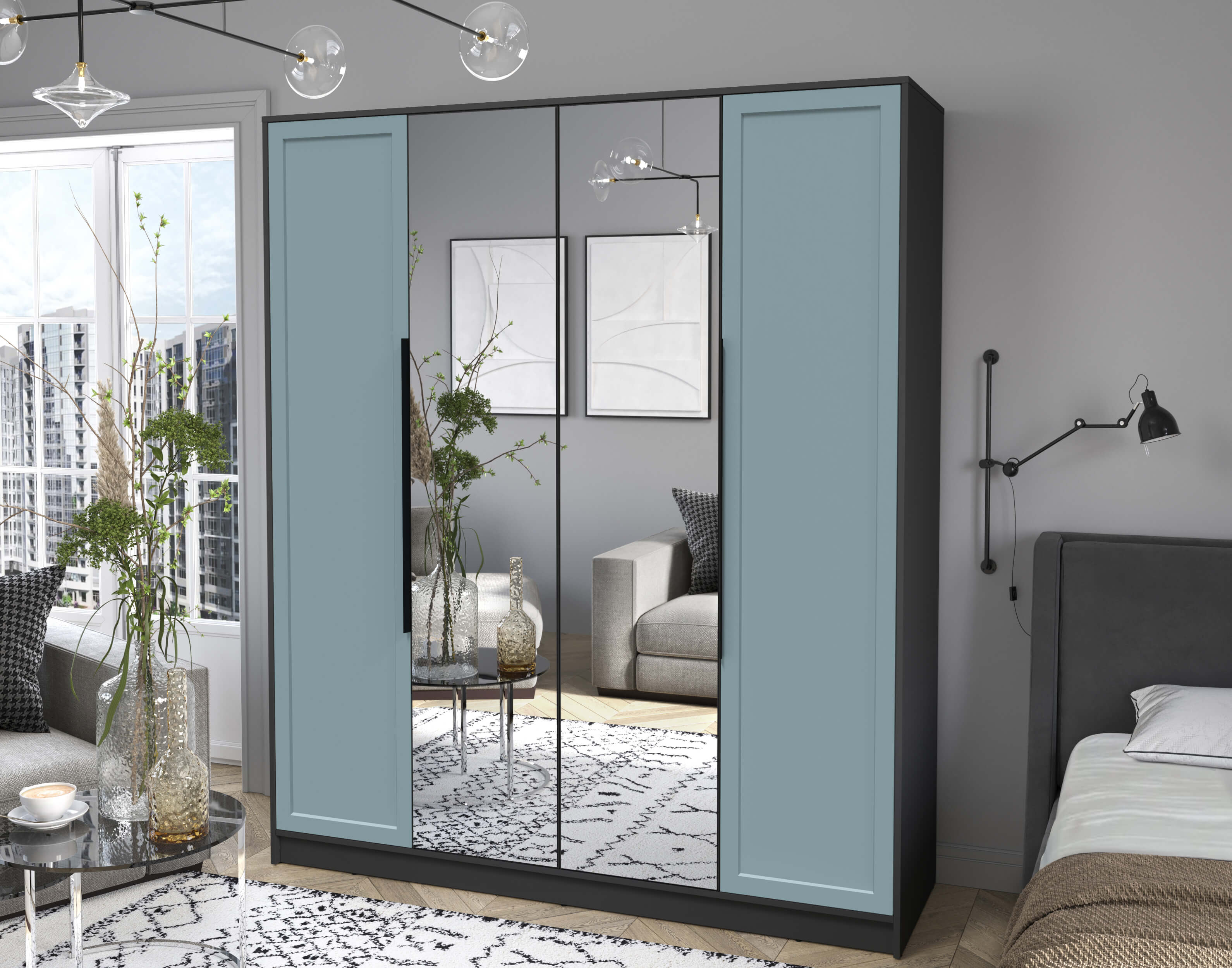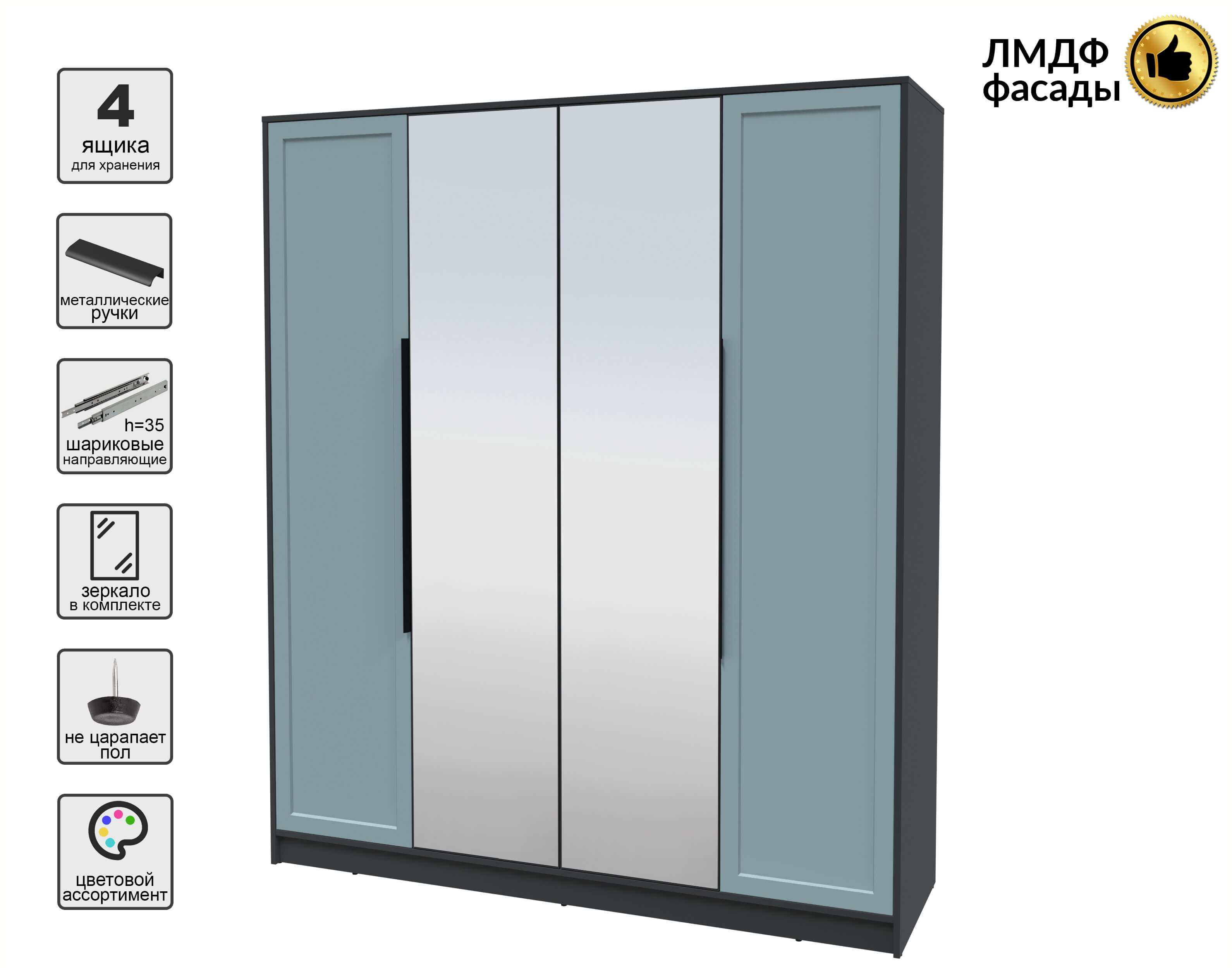 Шкаф распашной Тренд КТ-Ш4 (з) (Антрацит ЛДСП/ Океан ЛМДФ) Ш1800 В2128 Г547