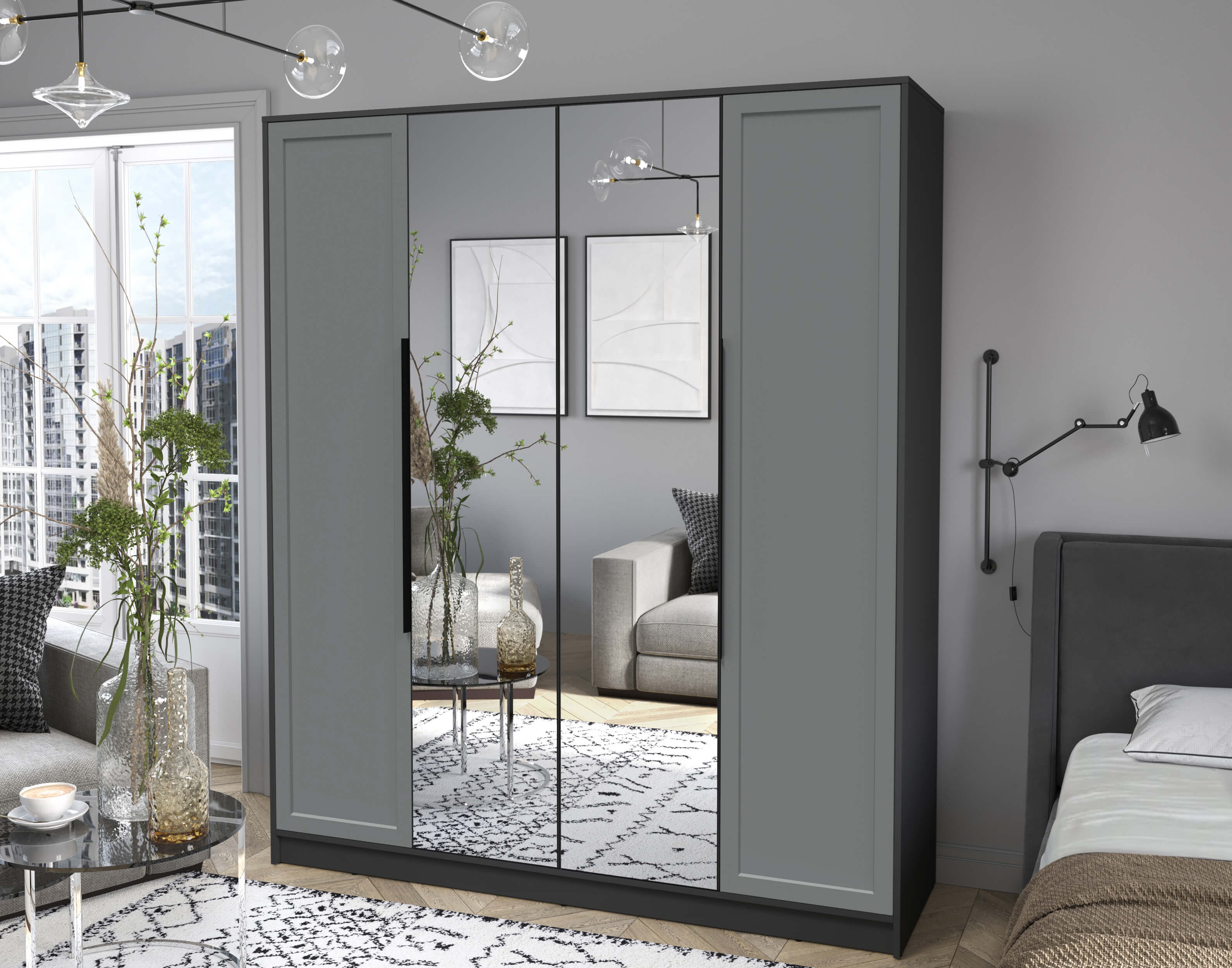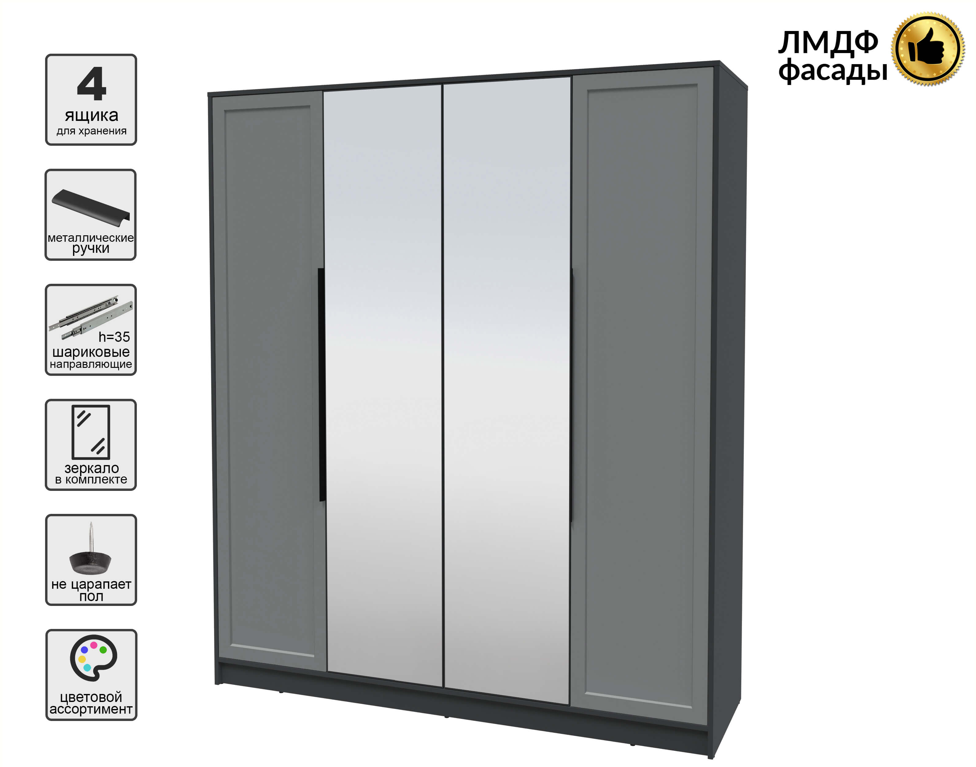 Шкаф распашной Тренд КТ-Ш4 (з) (Антрацит ЛДСП/ Серый ЛМДФ) Ш1800 В2128 Г547
