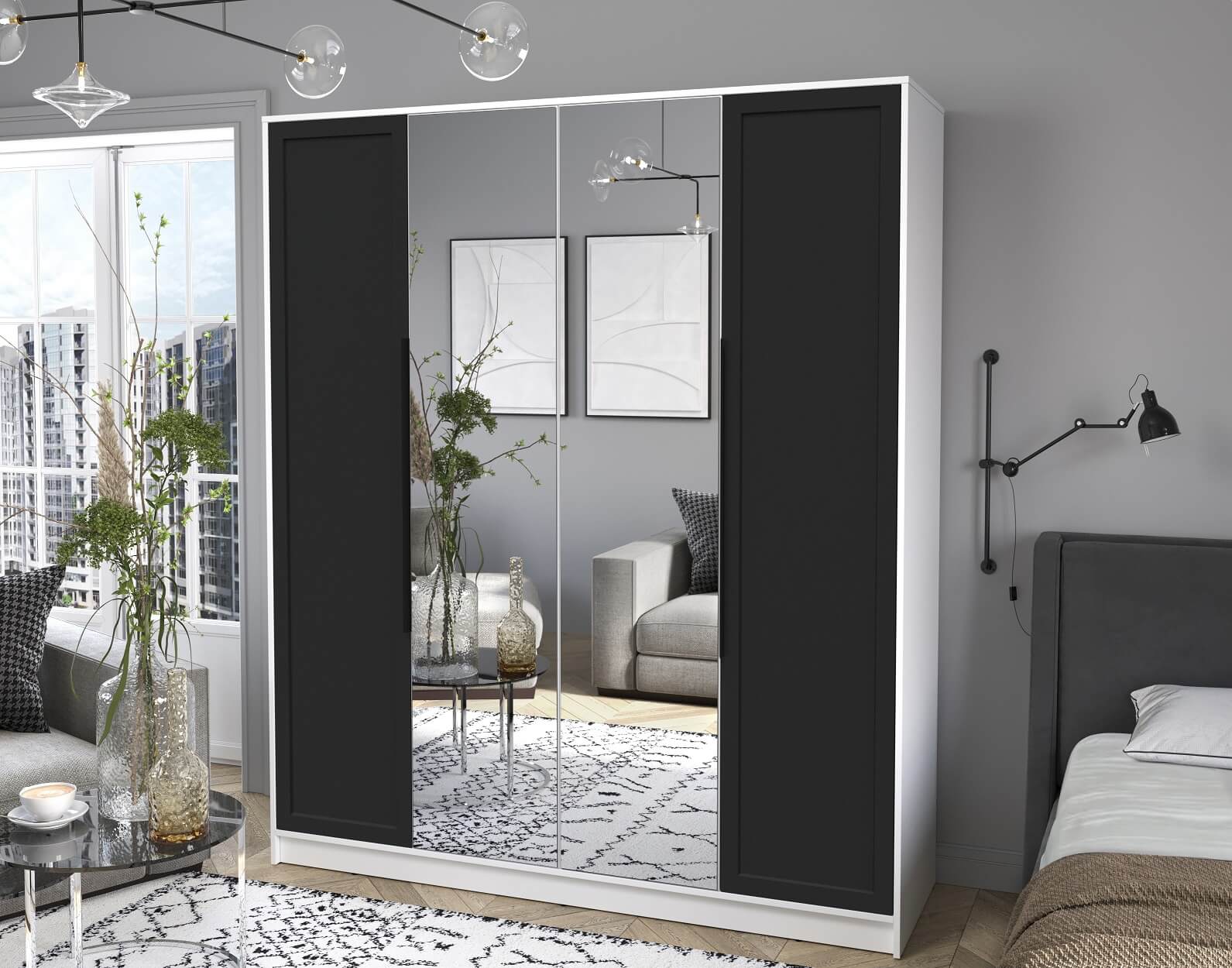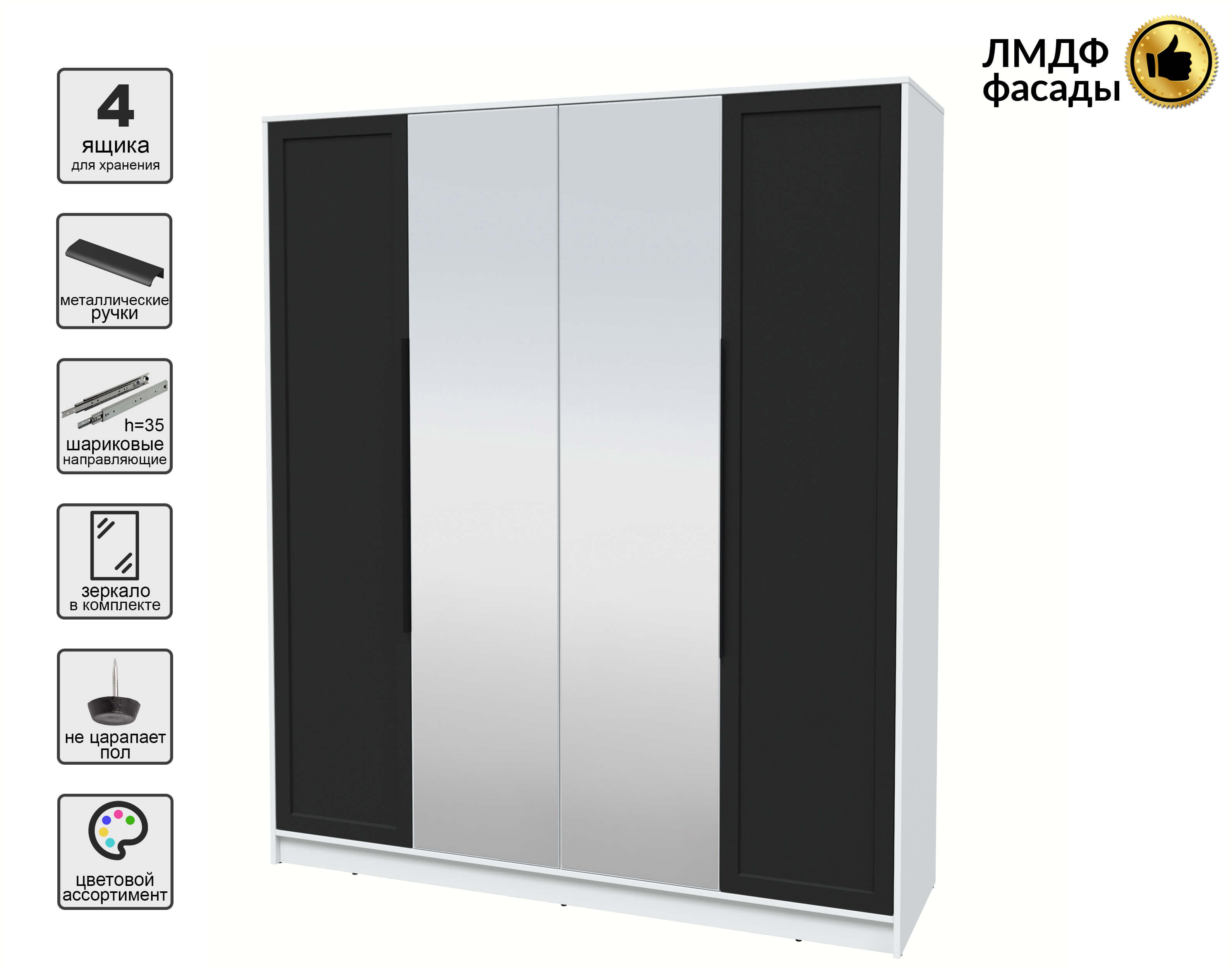 Шкаф распашной Тренд КТ-Ш4 (з) (Белый платинум ЛДСП/ Черный ЛМДФ) Ш1800 В2128 Г547