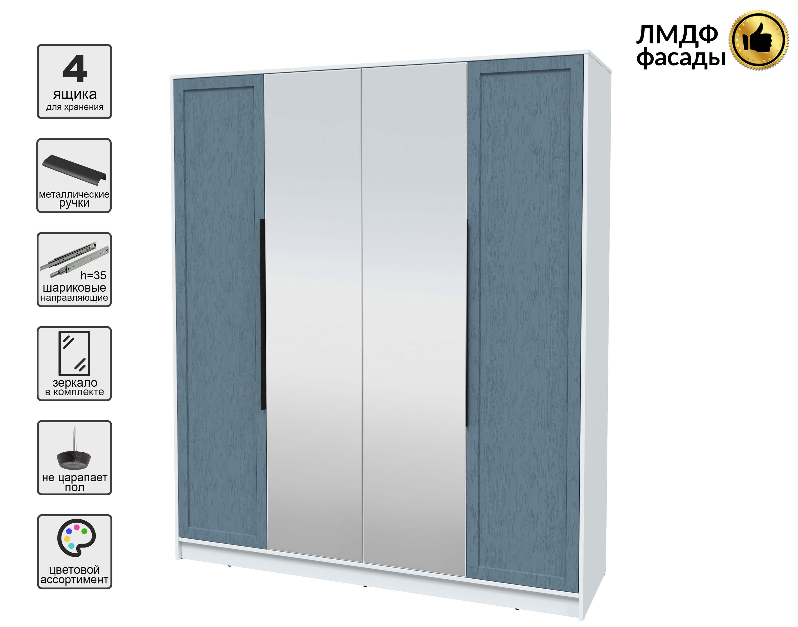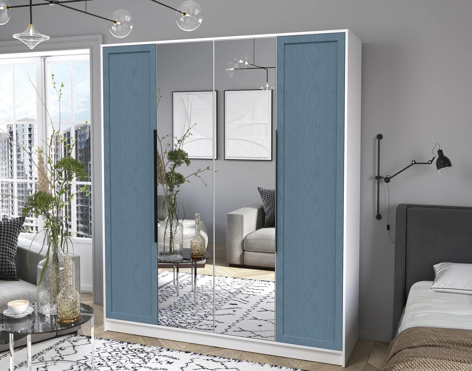 Шкаф распашной Тренд КТ-Ш4 (з) (Белый платинум ЛДСП/ Дуб лазурный ЛМДФ) Ш1800 В2128 Г547