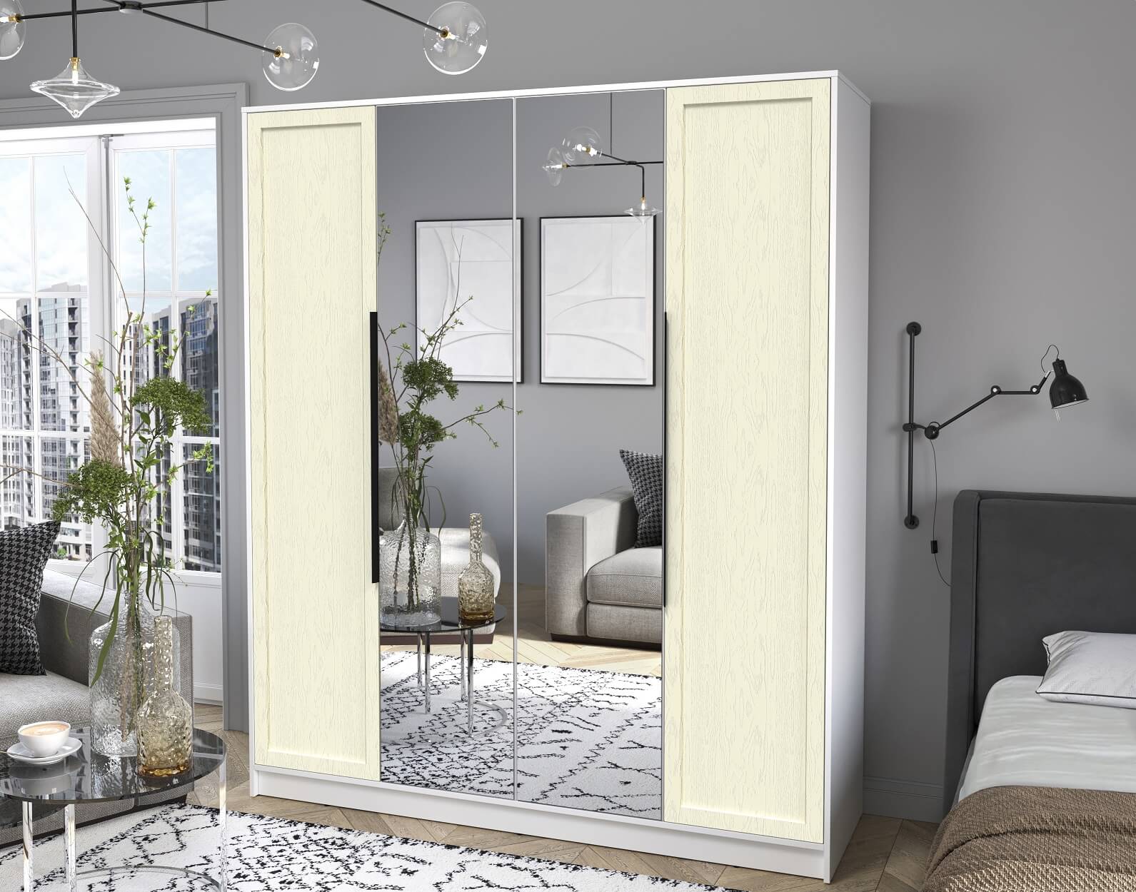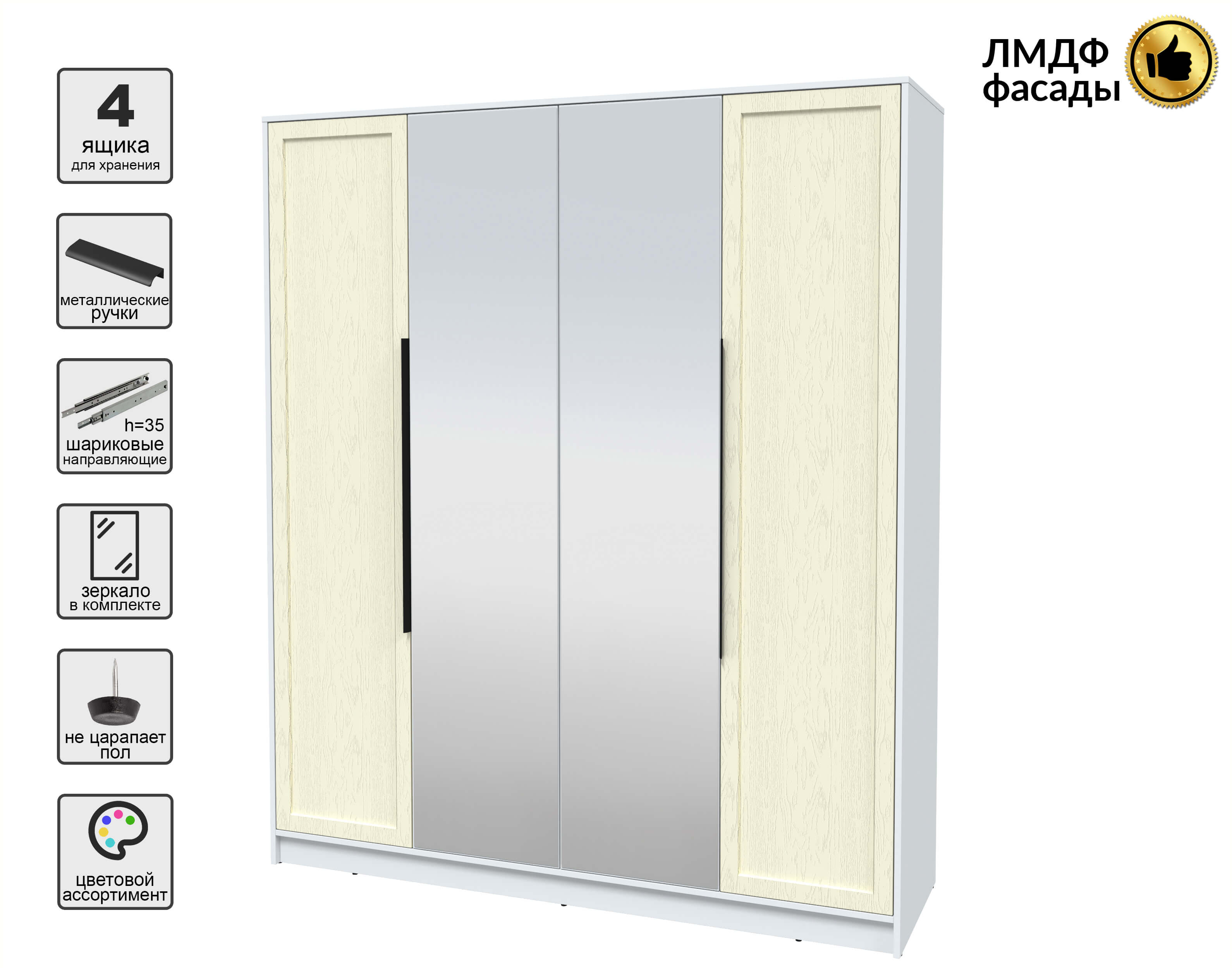 Шкаф распашной Тренд КТ-Ш4 (з) (Белый платинум ЛДСП/ Дуб снежный ЛМДФ) Ш1800 В2128 Г547