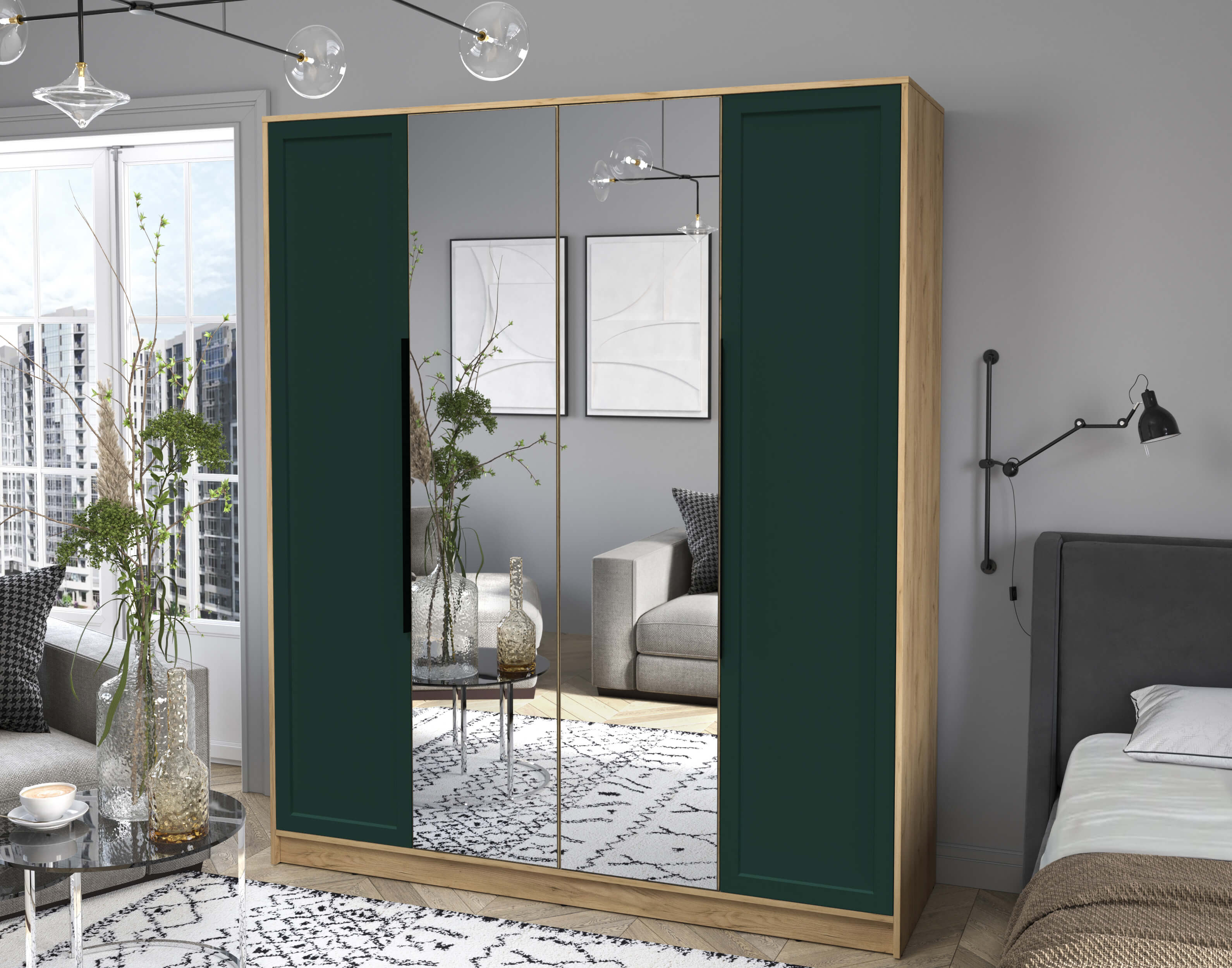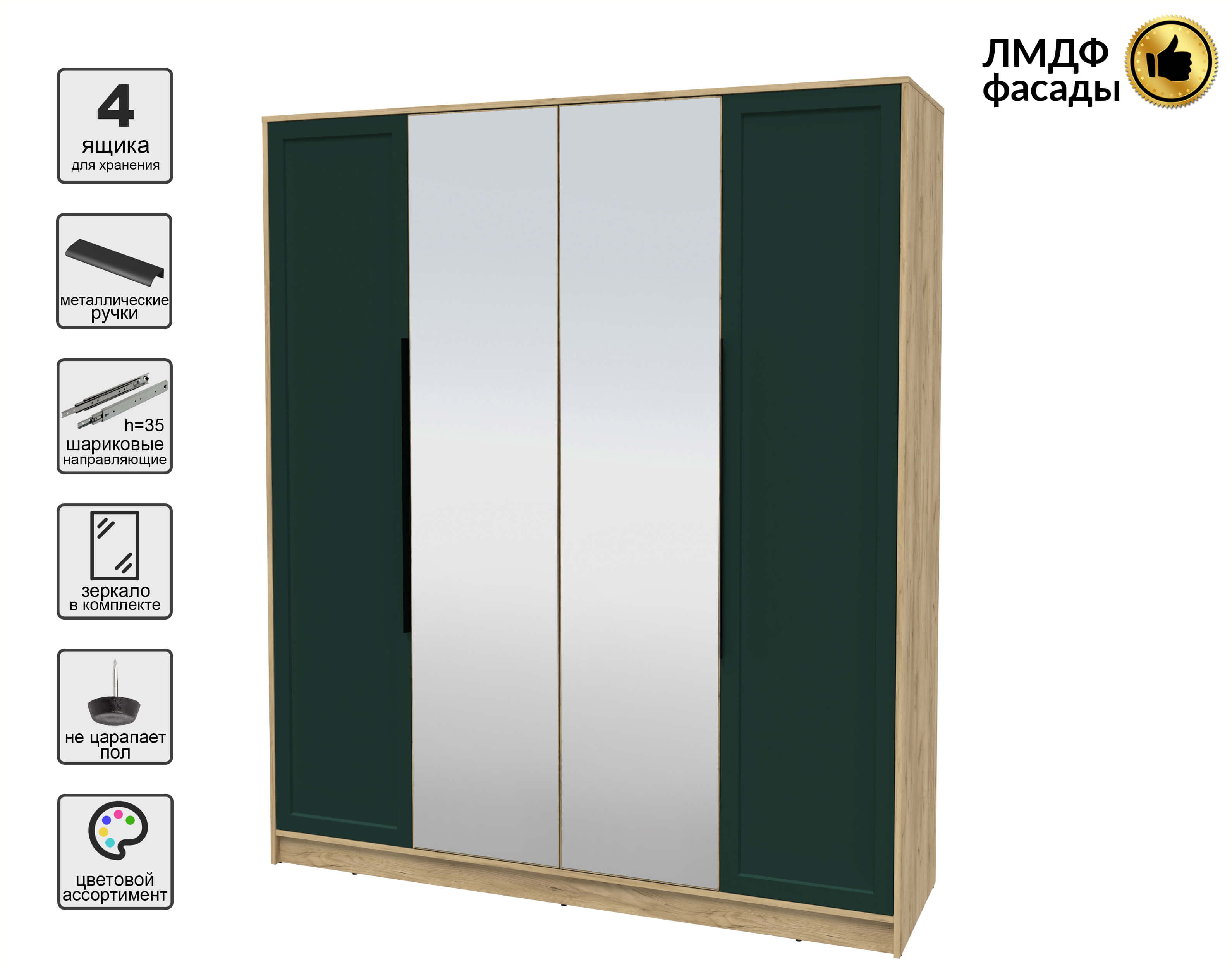 Шкаф распашной Тренд КТ-Ш4 (з) (Дуб золотой ЛДСП/ Изумруд ЛМДФ) Ш1800 В2128 Г547