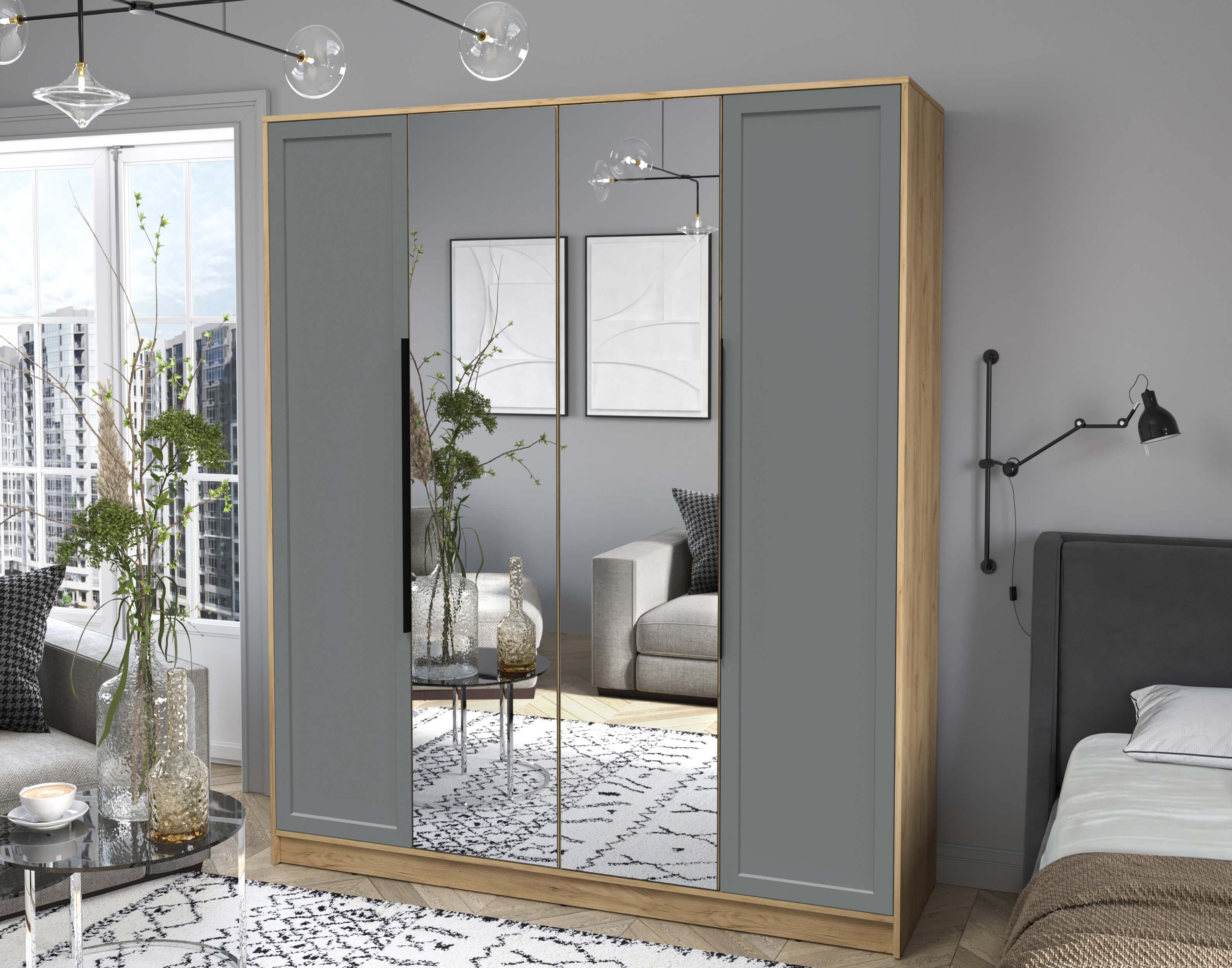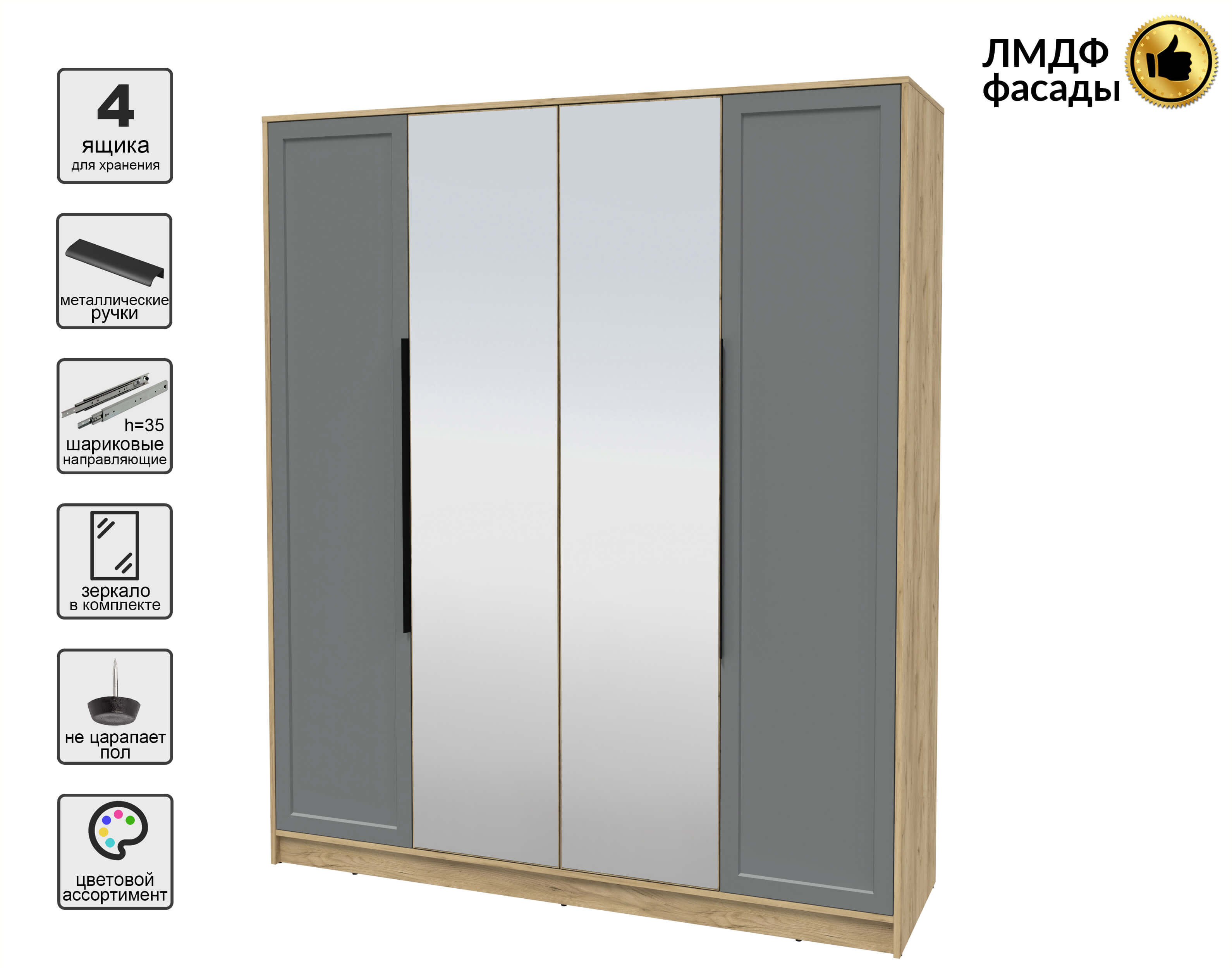 Шкаф распашной Тренд КТ-Ш4 (з) (Дуб золотой ЛДСП/ Серый ЛМДФ) Ш1800 В2128 Г547