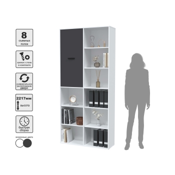 Шкаф Skill-20-1 (Антрацит/ Белый фасад) Ш1000 В2217 Г355