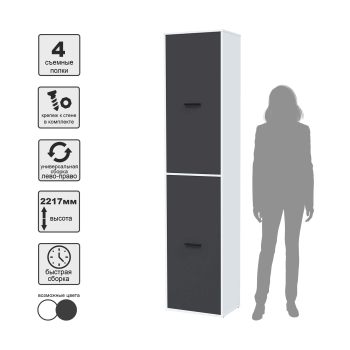 Шкаф Skill-21-2 (Антрацит/ Белый фасад) Ш509 В2217 Г355