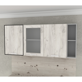 При сборке кухни по модулям, шкафы все являются отдельно стоящими, тем самым давая возможность их менять между собой местами. Дополнительно любой набор можно доукомплектовать шкафом под вытяжку 500 мм или 600 мм и под встраиваемую духовку или микроволновую печь. Так-же в качестве хорошего завершения угловых кухонь предлагаются угловые модули НПз30 и ВПз30. Важно при заказе уточнить левые или правые. Кому необходимо больше пространства для хранения, предлагаем дополнить кухню пеналом 300 мм, 400 мм или 600 мм.