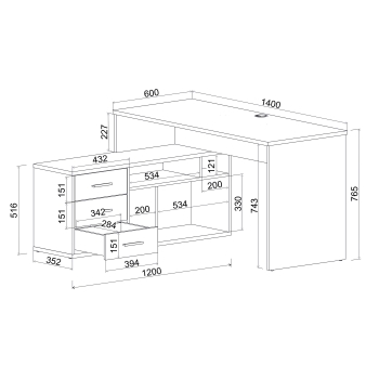 Стол компьютерный Skill-5 Левый-Правый (Белый) Ш1400 В765 Г1200