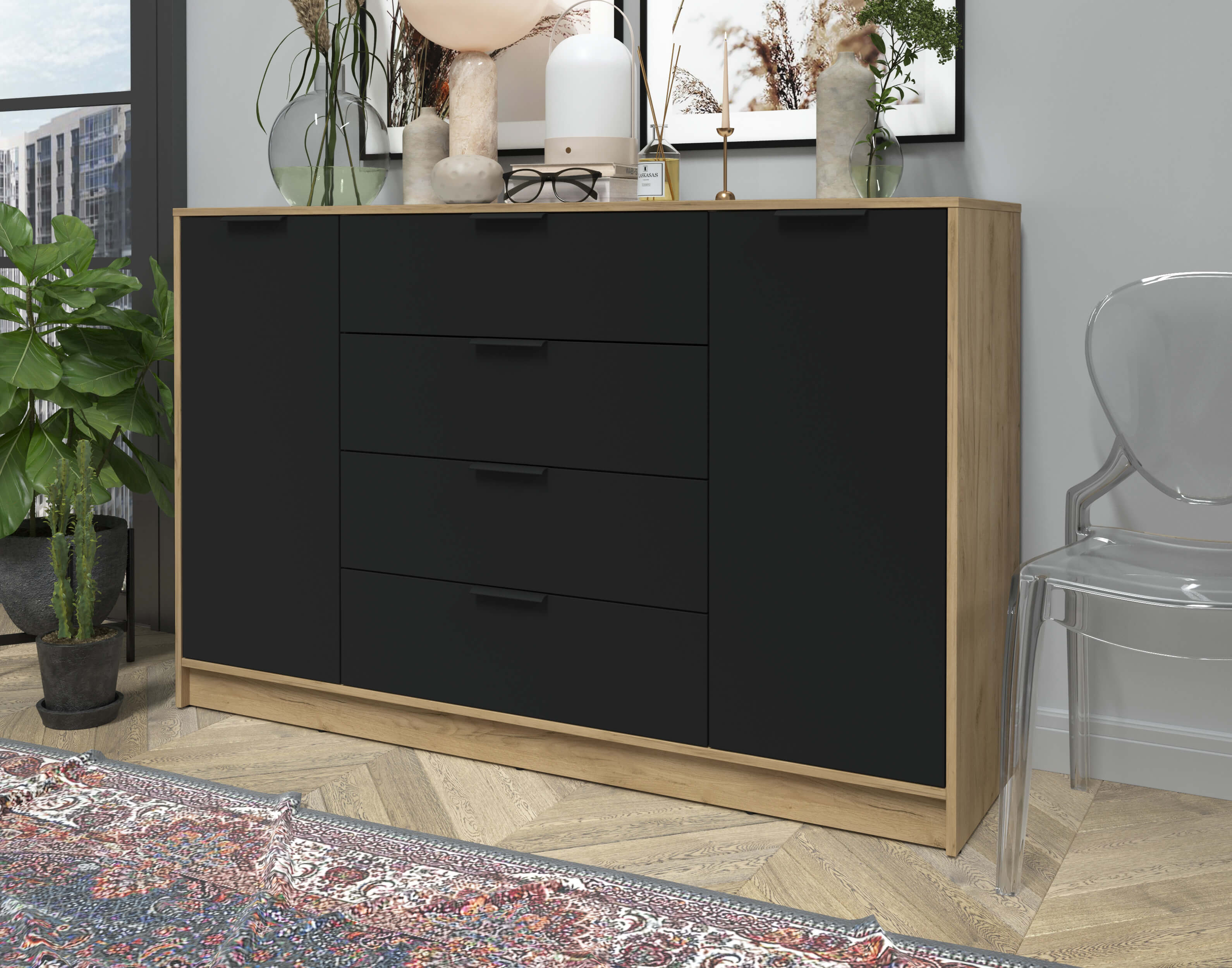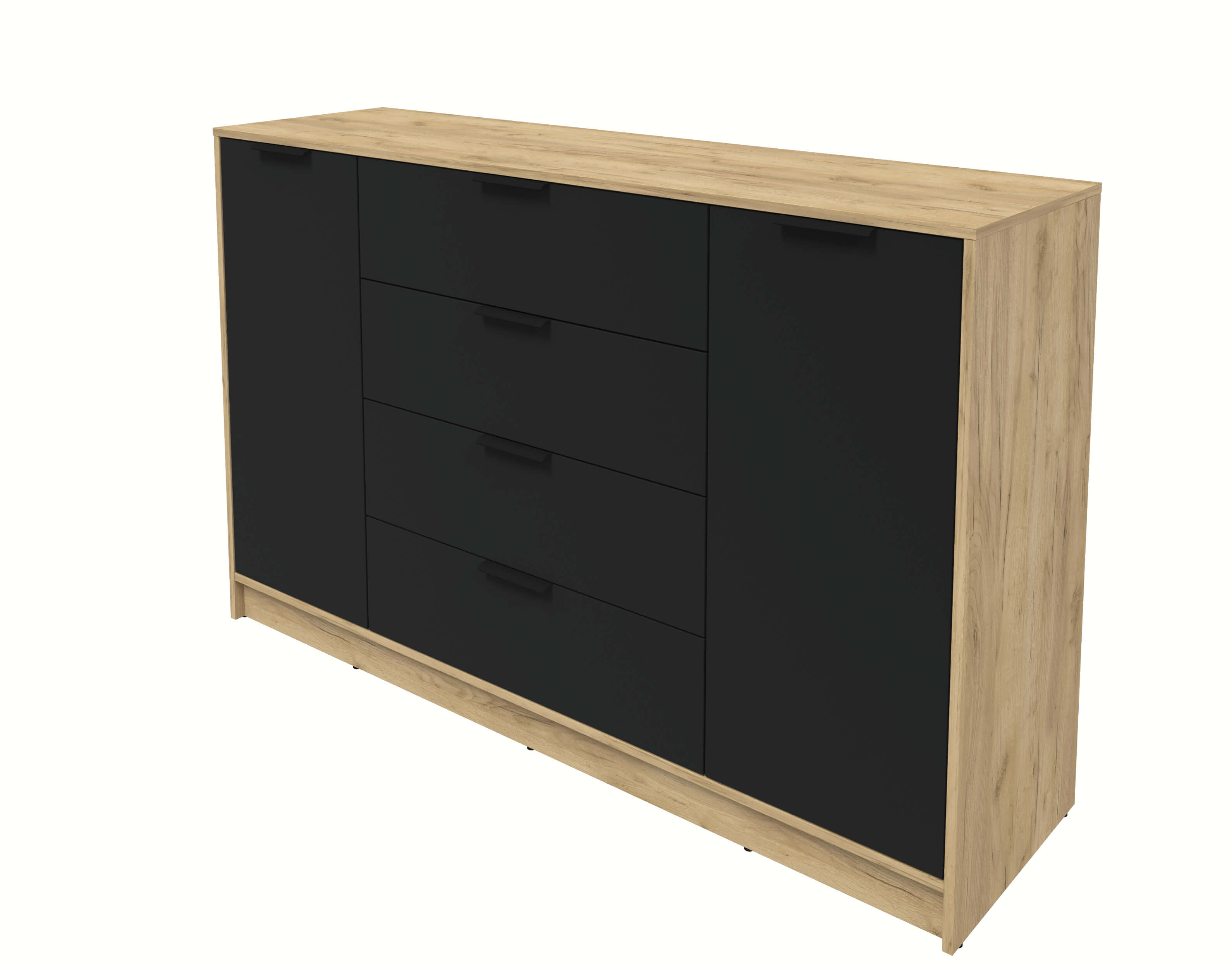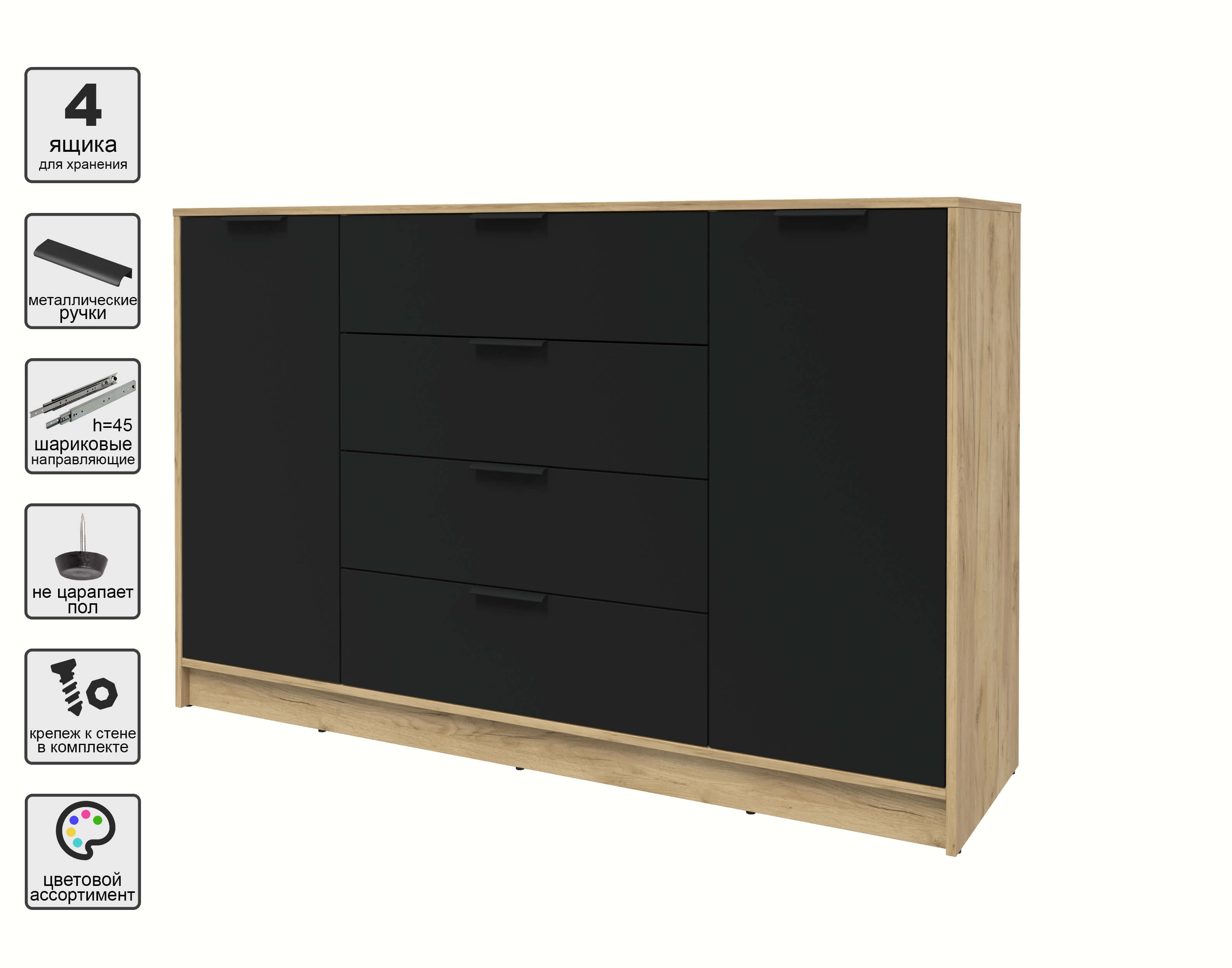 Тумба КТ-Т160 (Дуб золотой ЛДСП/ Черный ЛДСП) Ш1600 В1020 Г451