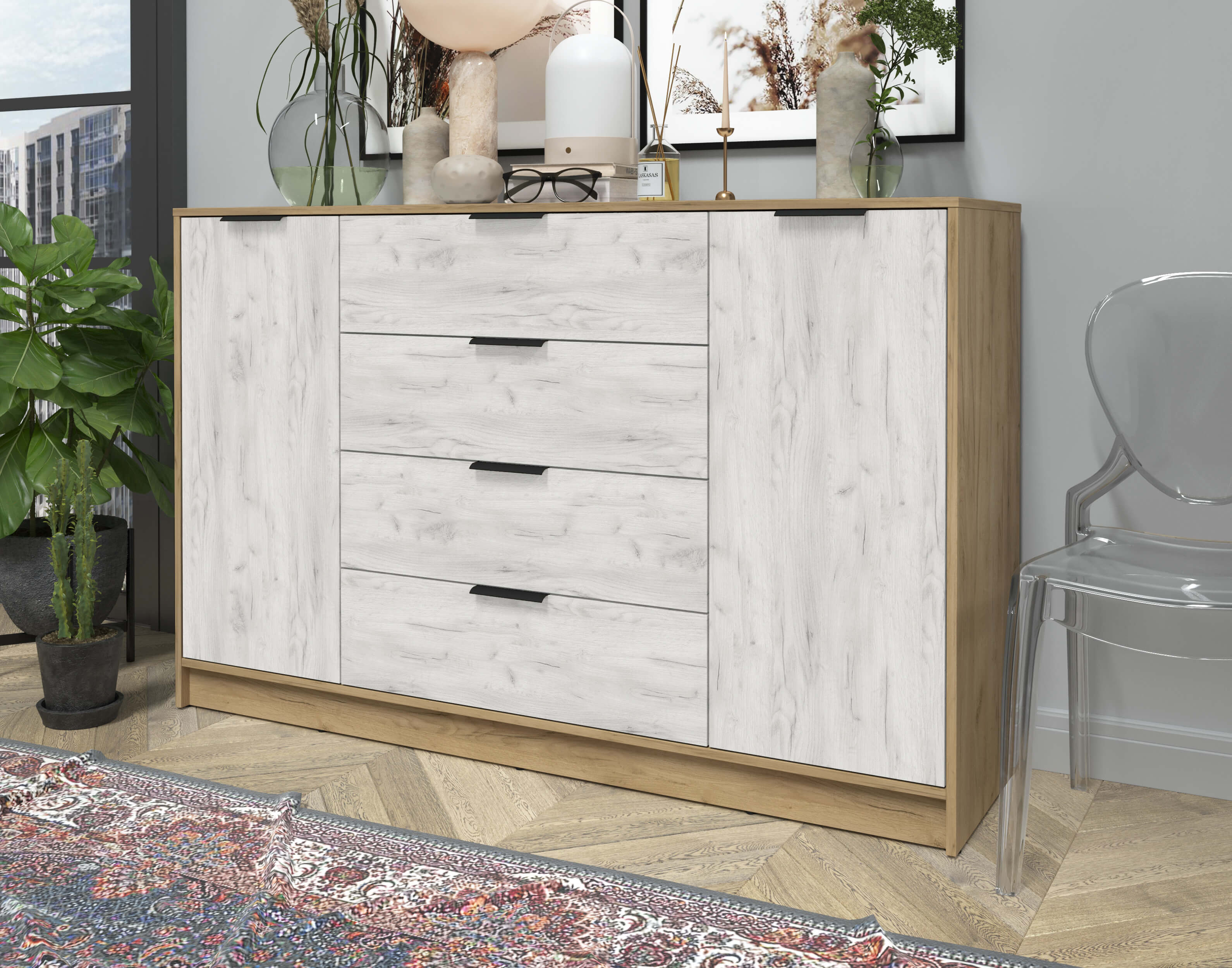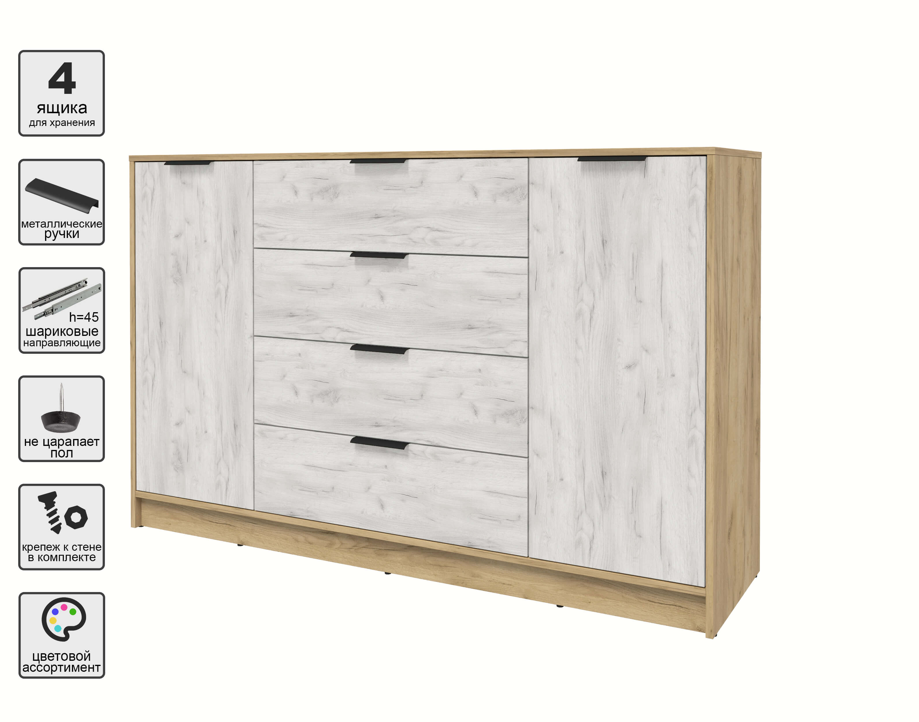 Тумба КТ-Т160 (Дуб золотой ЛДСП/ Дуб белый ЛДСП) Ш1600 В1020 Г451