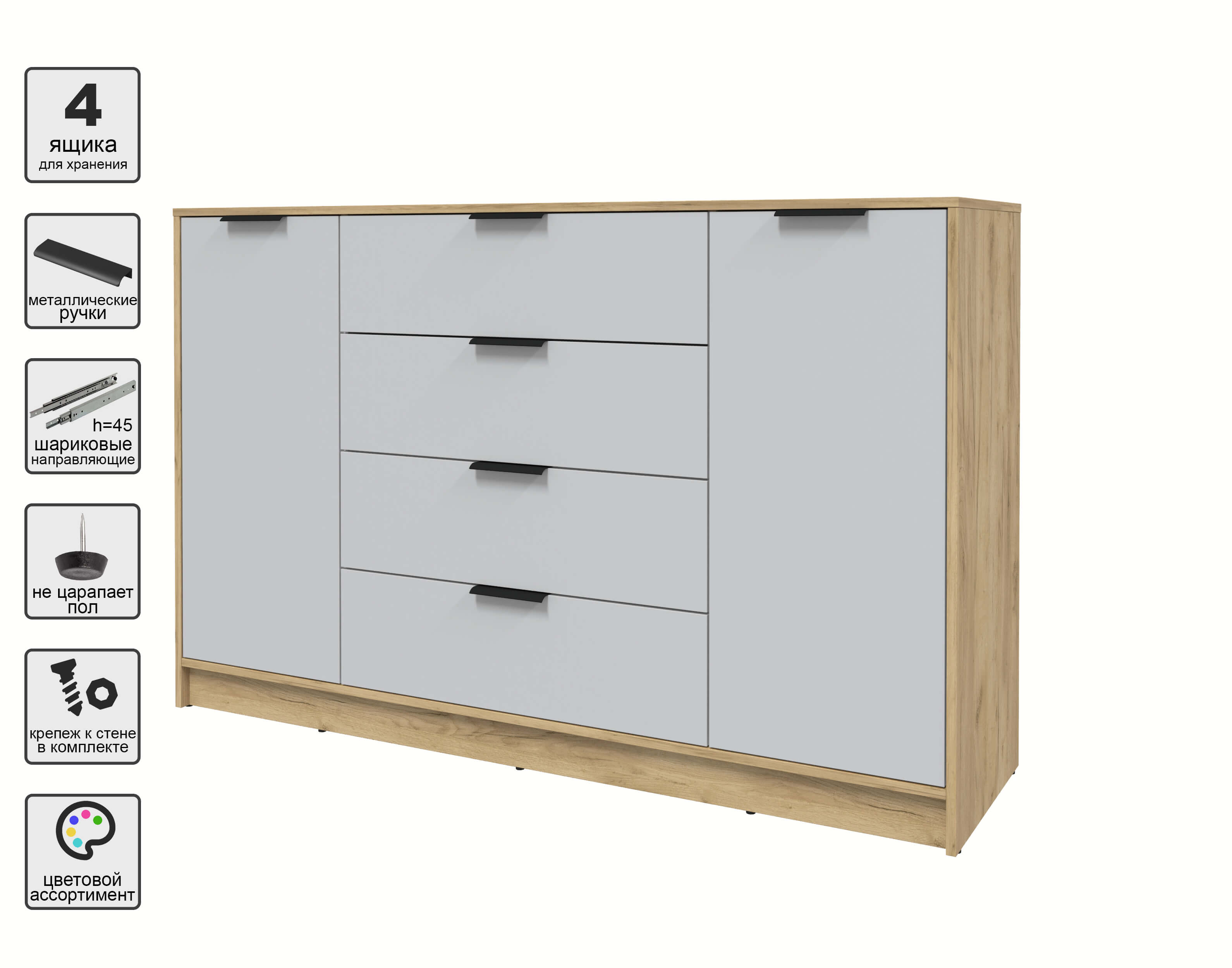 Тумба КТ-Т160 (Дуб золотой ЛДСП/ Серый ЛДСП) Ш1600 В1020 Г451