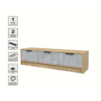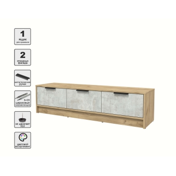 Тумба КТ-ТВ3-35 (Дуб золотой ЛДСП/ Бетон портленд ЛДСП) Ш1360 В348 Г355