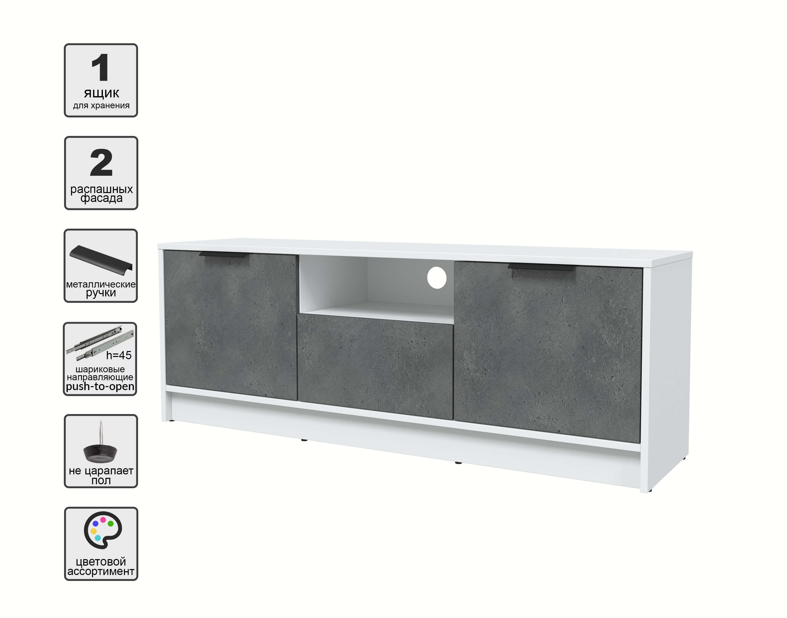 Тумба КТ-ТВ3-50 (Белый ЛДСП/ Бетон портленд ЛДСП) Ш1360 В495 Г355