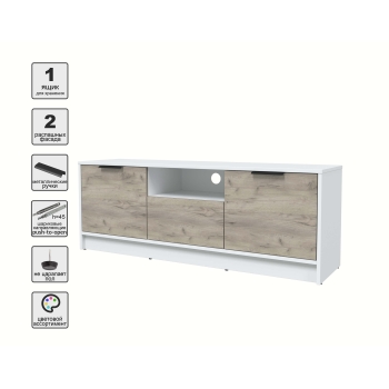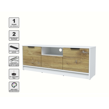 Тумба КТ-ТВ3-50 (Белый ЛДСП/ Дуб золотой ЛДСП) Ш1360 В495 Г355