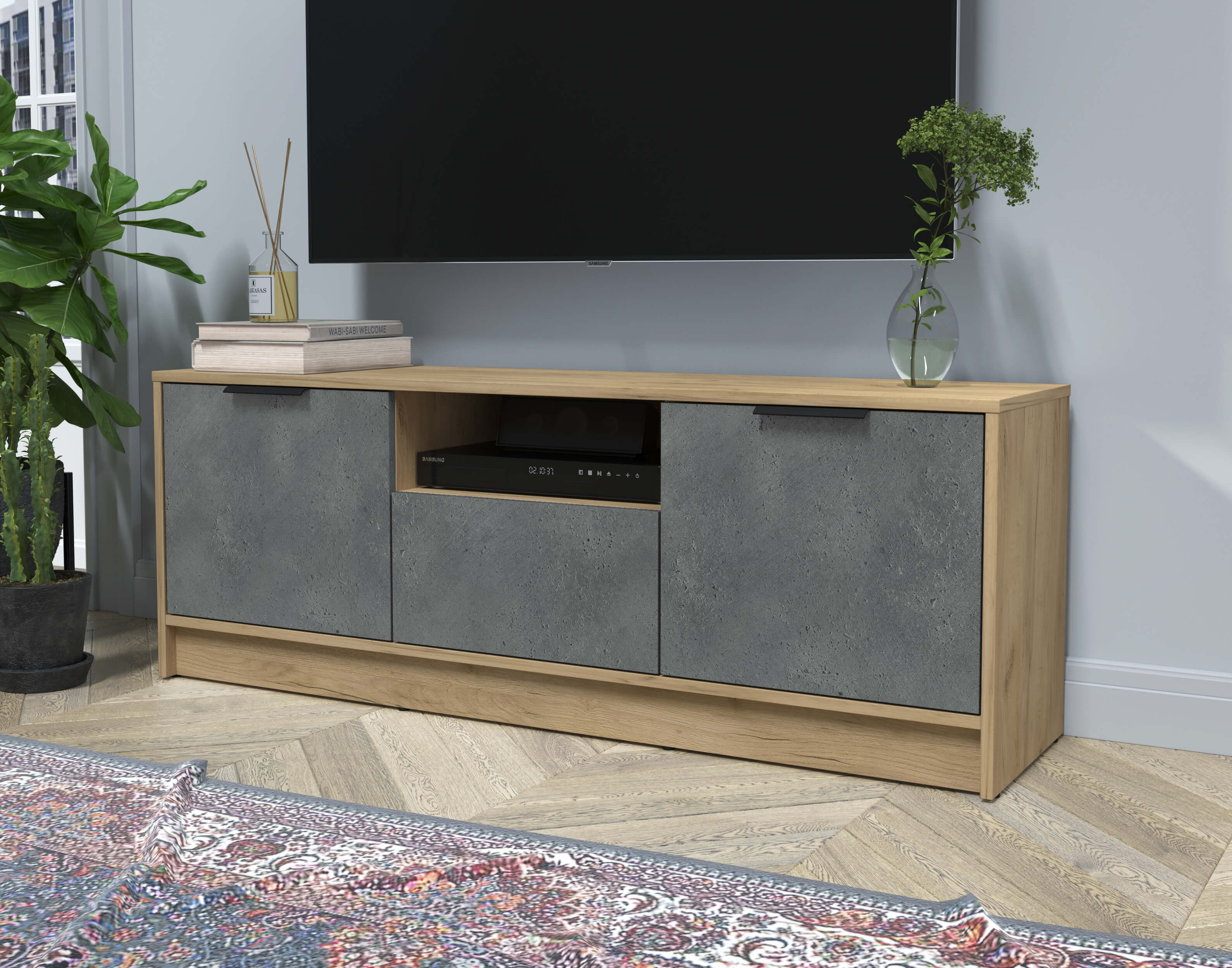 Тумба КТ-ТВ3-50 (Дуб золотой ЛДСП/ Бетон портленд ЛДСП) Ш1360 В495 Г355