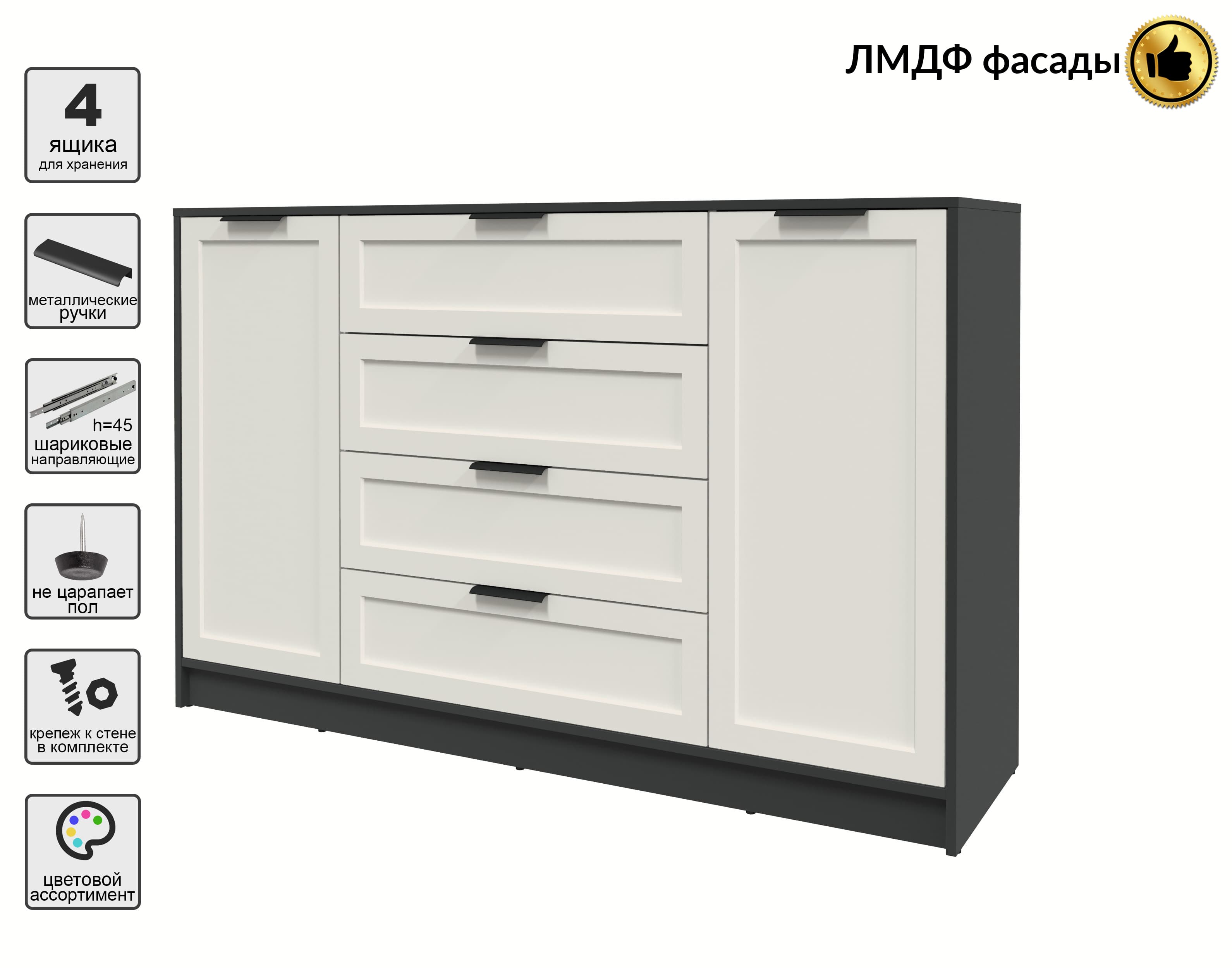 Тумба Тренд КТ-Т160 (Антрацит ЛДСП/ Кашемир ЛМДФ) Ш1600 В1020 Г451