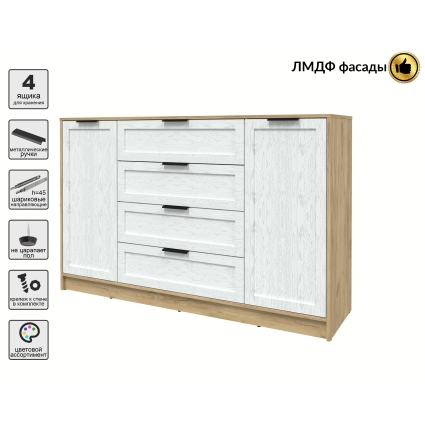 Тумба Тренд КТ-Т160 (Белый ЛДСП/ Дуб полярный ЛМДФ) Ш1600 В1020 Г451