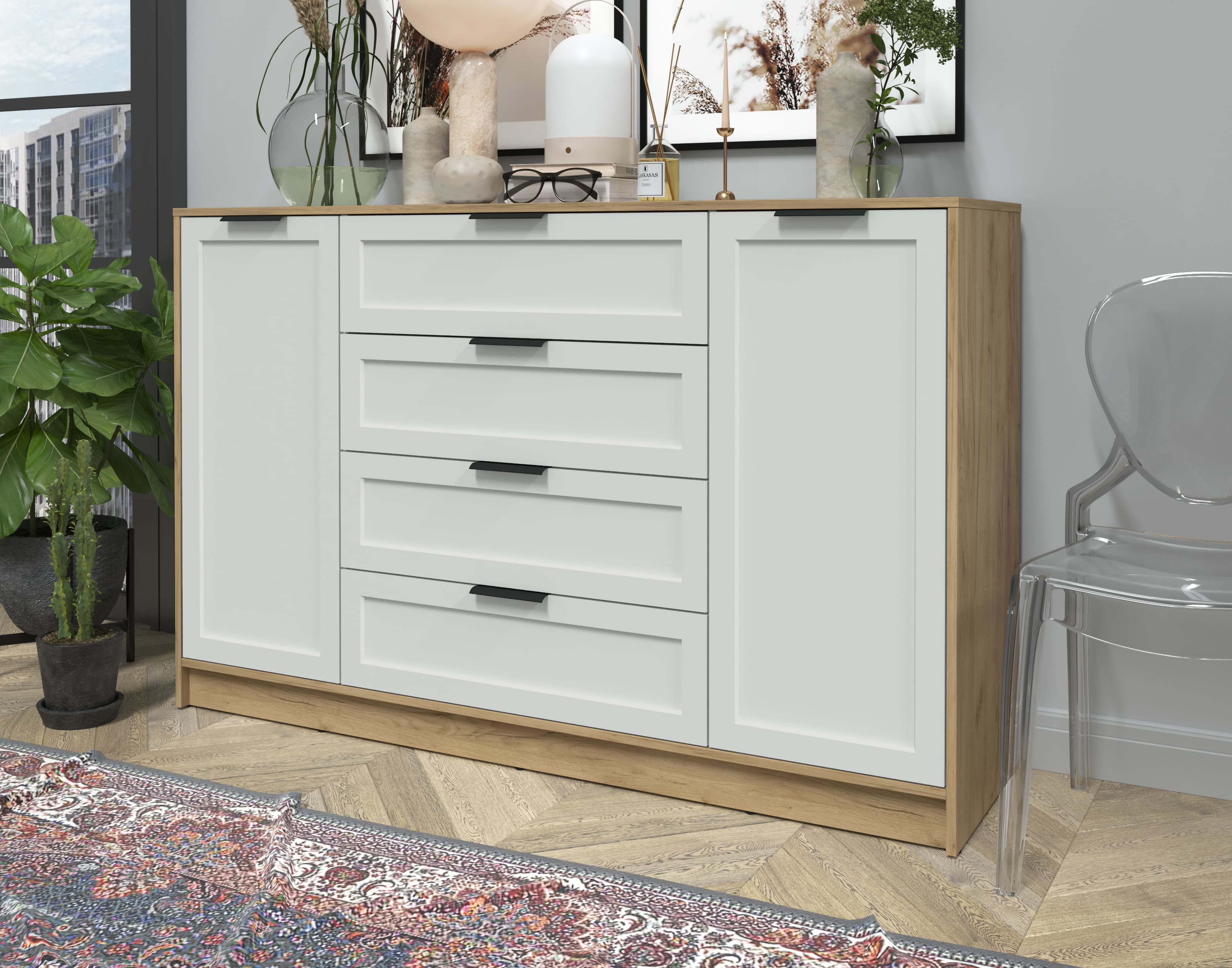 Тумба Тренд КТ-Т160 (Дуб золотой ЛДСП/ Грэй ЛМДФ) Ш1600 В1020 Г451