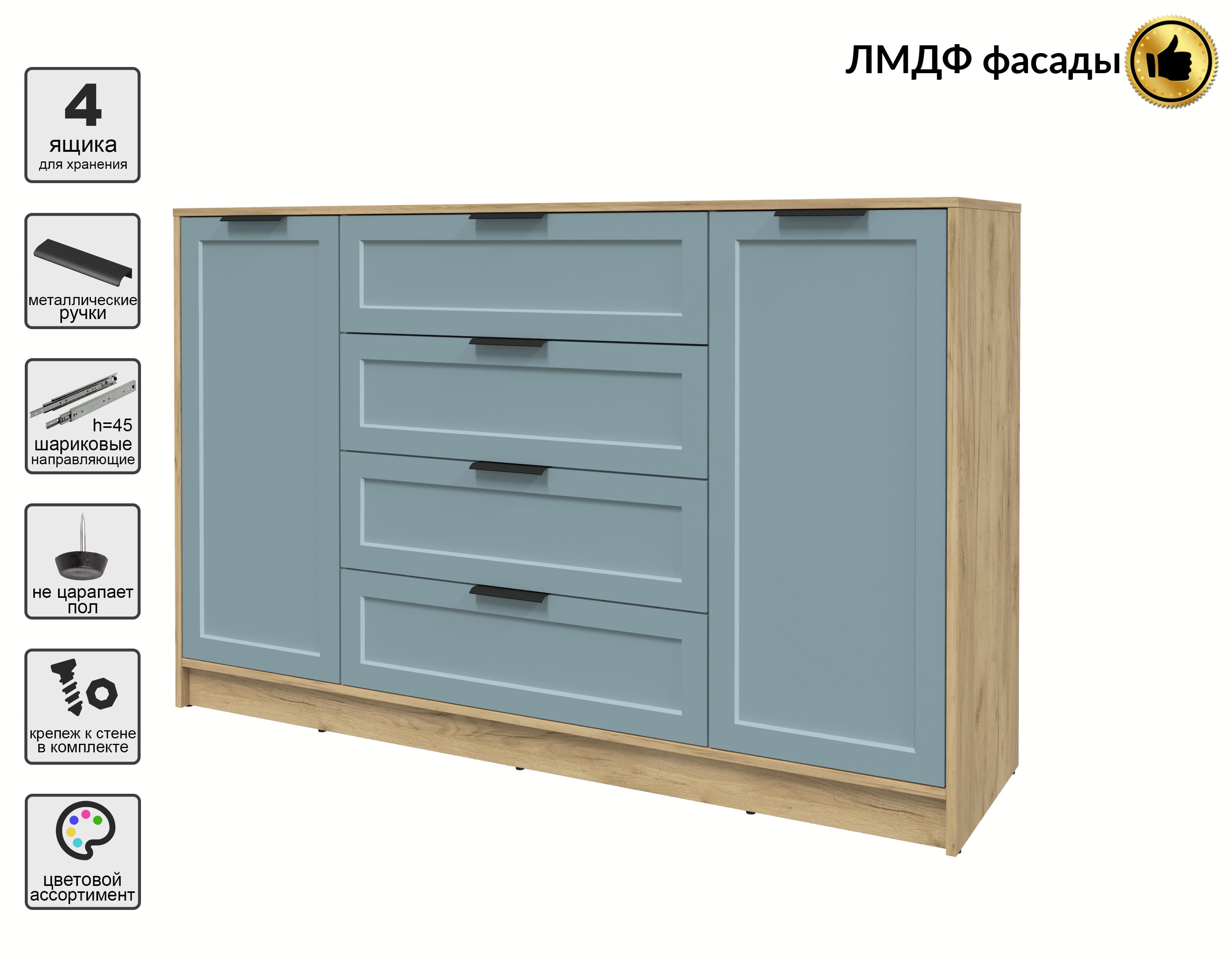 Тумба Тренд КТ-Т160 (Дуб золотой ЛДСП/ Океан ЛМДФ) Ш1600 В1020 Г451