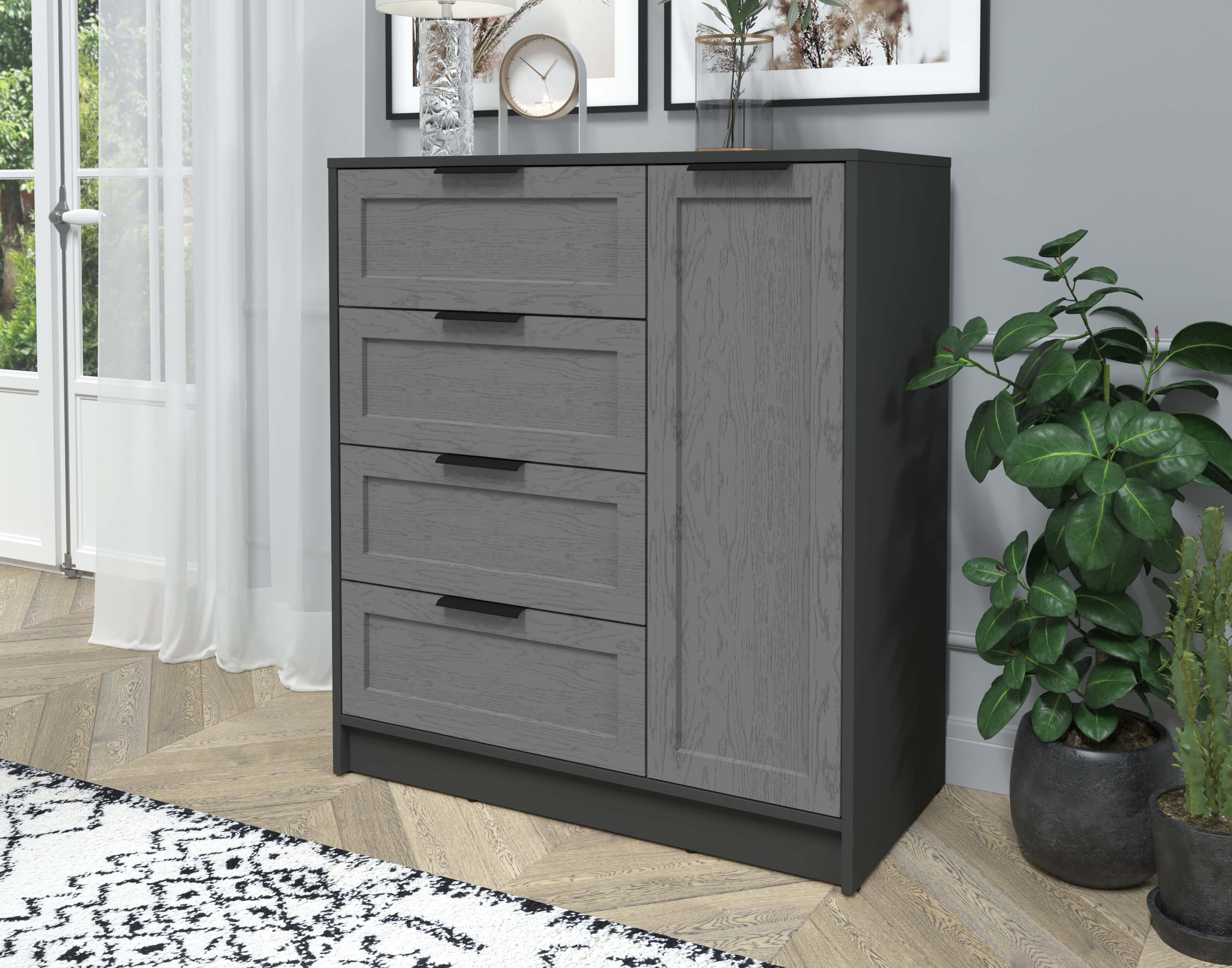 Тумба Тренд КТ-Т90 (Антрацит ЛДСП/ Дуб серый ЛМДФ) Ш900 В1020 Г451