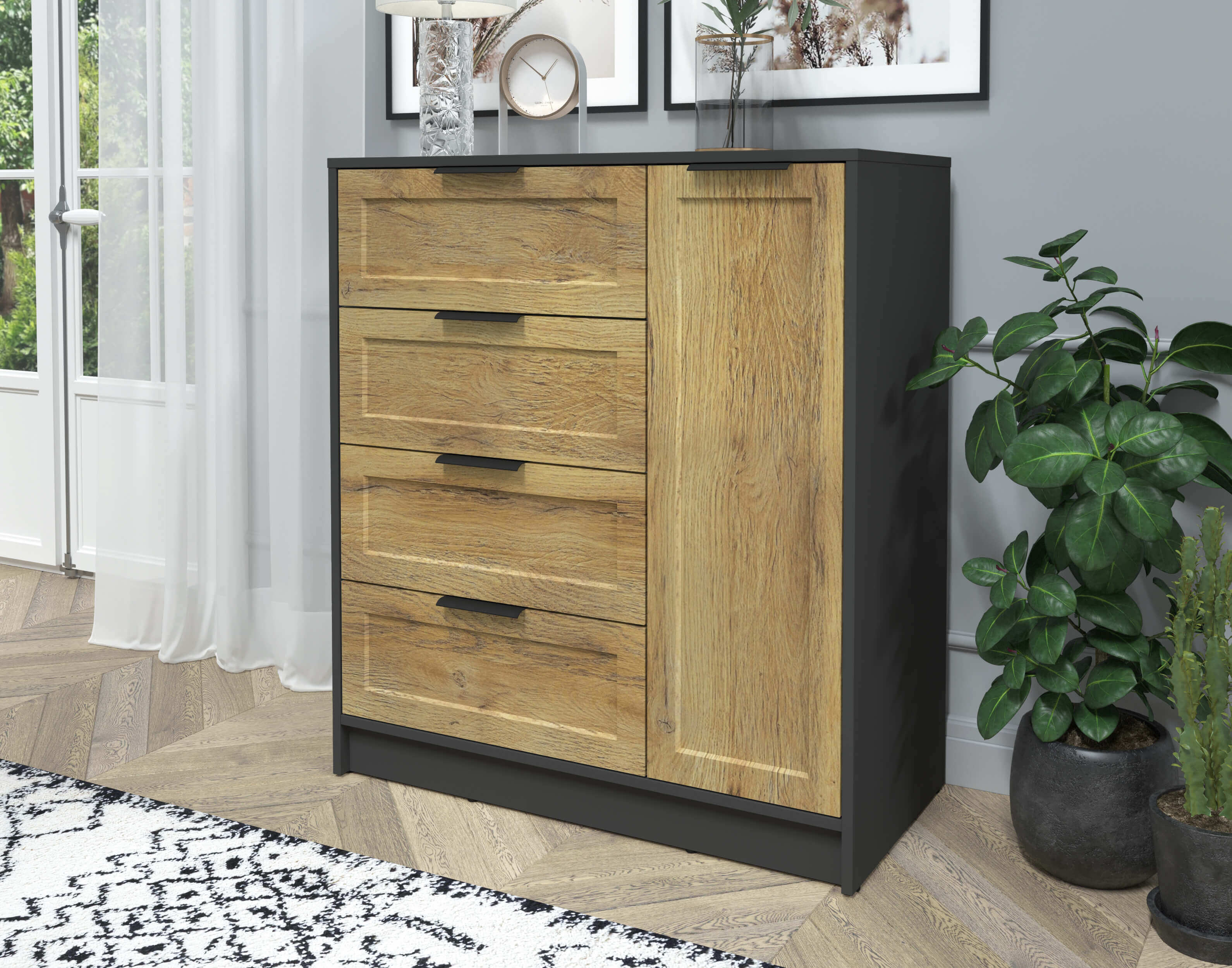 Тумба Тренд КТ-Т90 (Антрацит ЛДСП/ Дуб вотан ЛМДФ) Ш900 В1020 Г451
