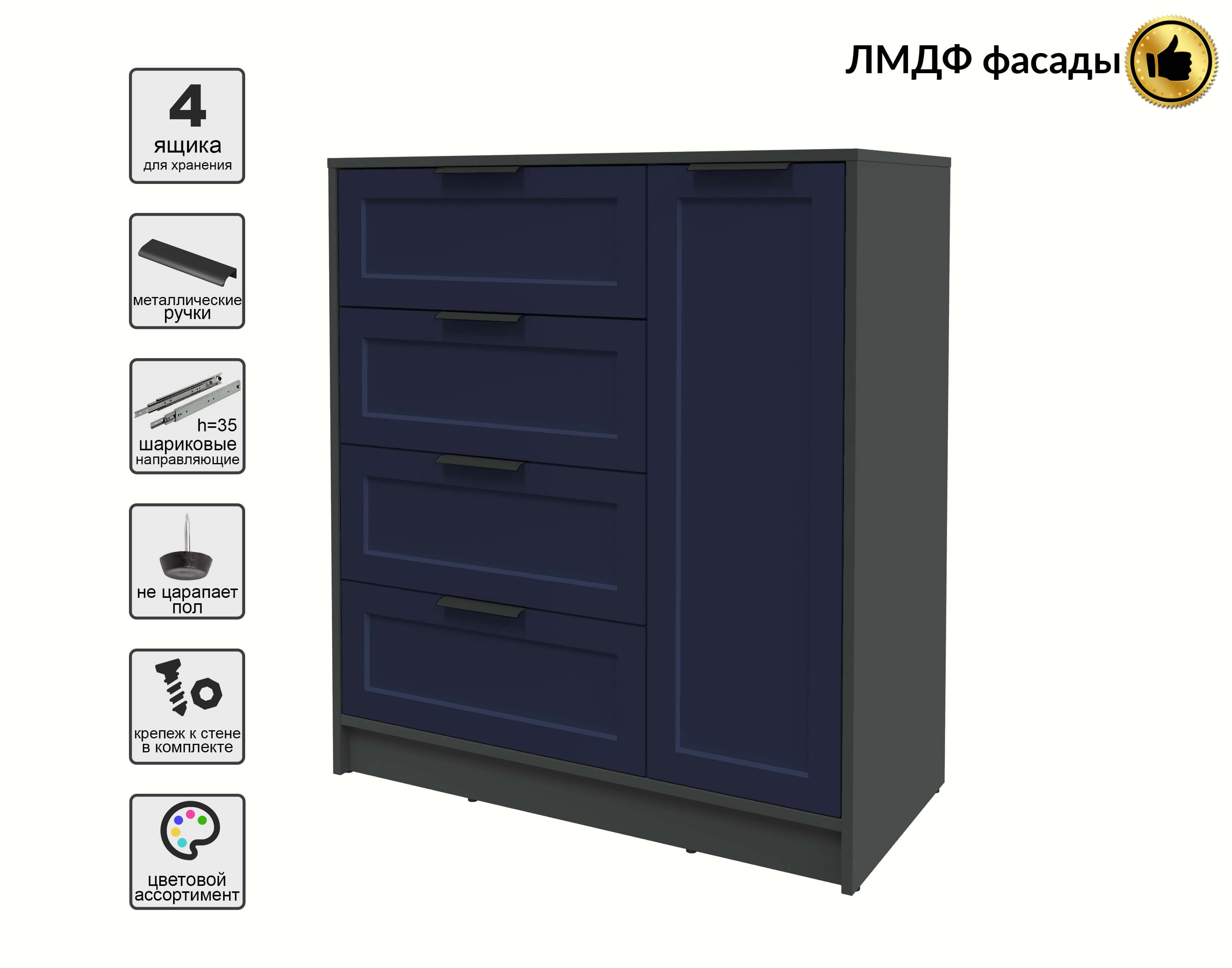 Тумба Тренд КТ-Т90 (Антрацит ЛДСП/ Индиго ЛМДФ) Ш900 В1020 Г451