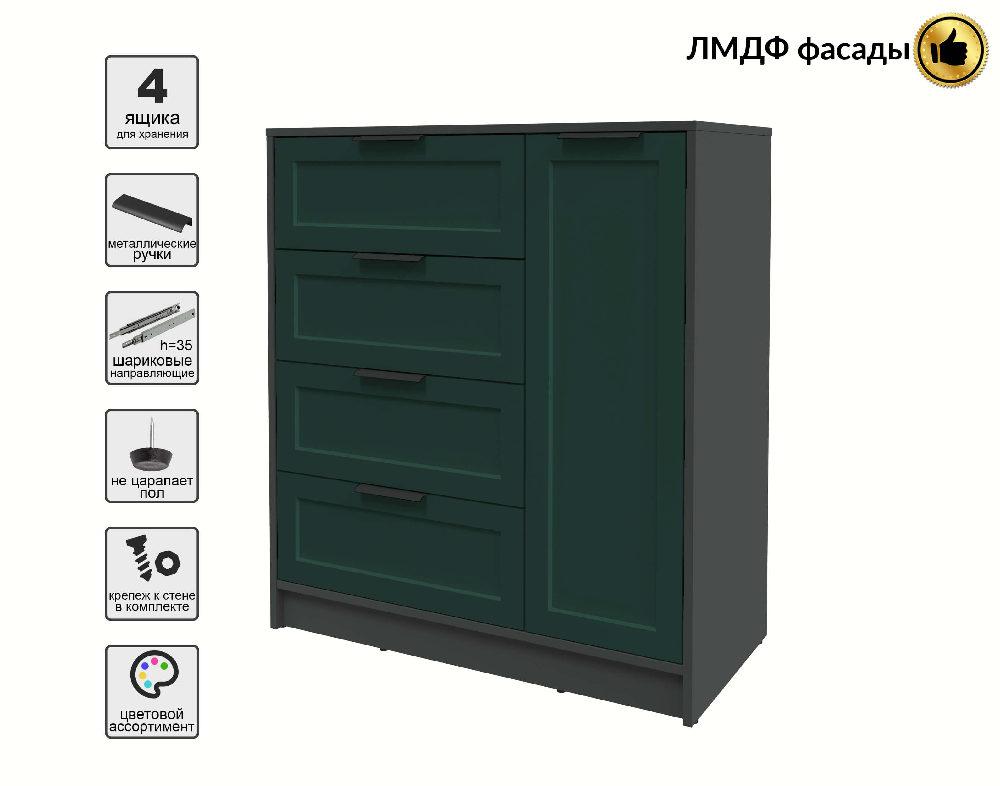 Тумба Тренд КТ-Т90 (Антрацит ЛДСП/ Изумруд ЛМДФ) Ш900 В1020 Г451