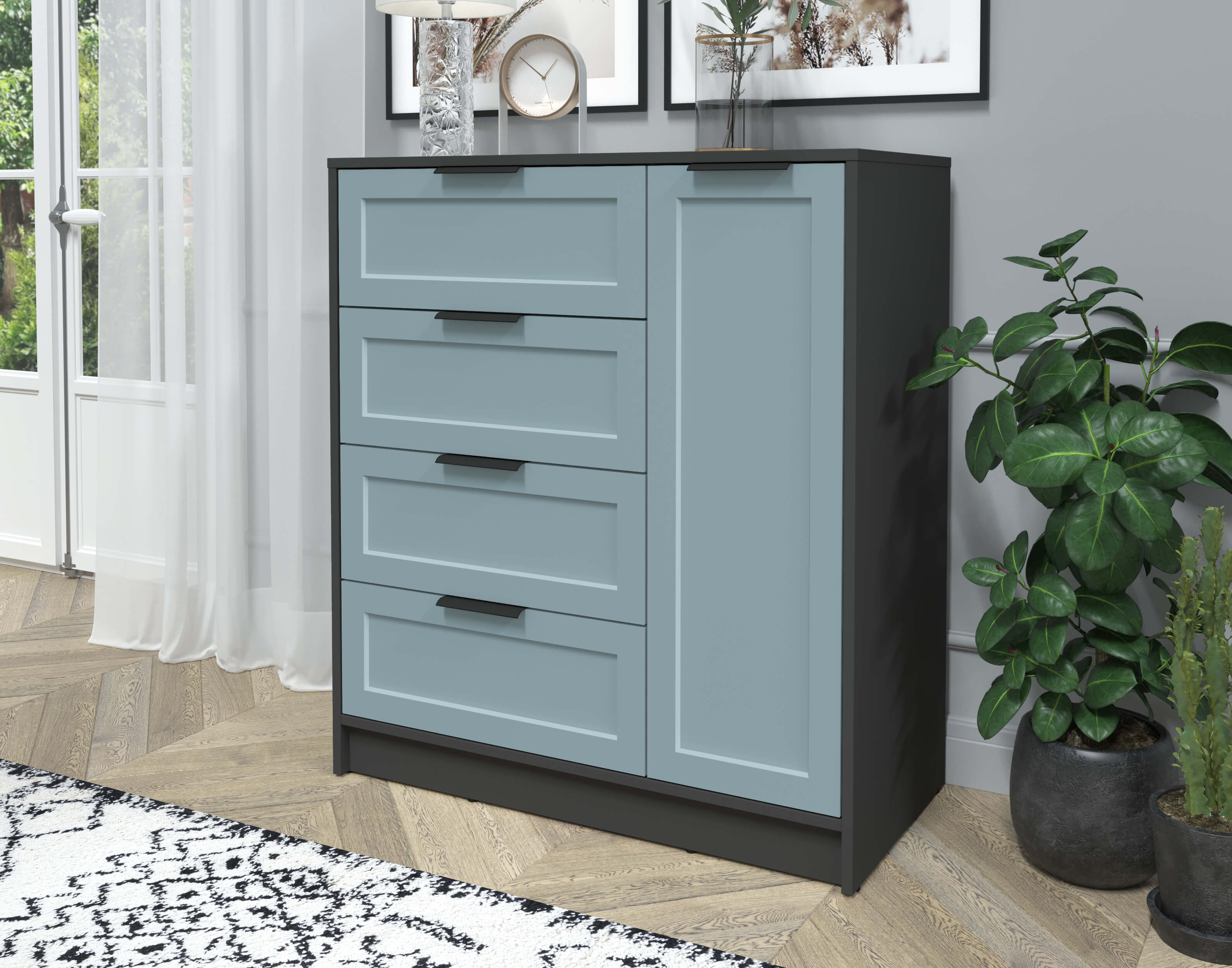 Тумба Тренд КТ-Т90 (Антрацит ЛДСП/ Океан ЛМДФ) Ш900 В1020 Г451