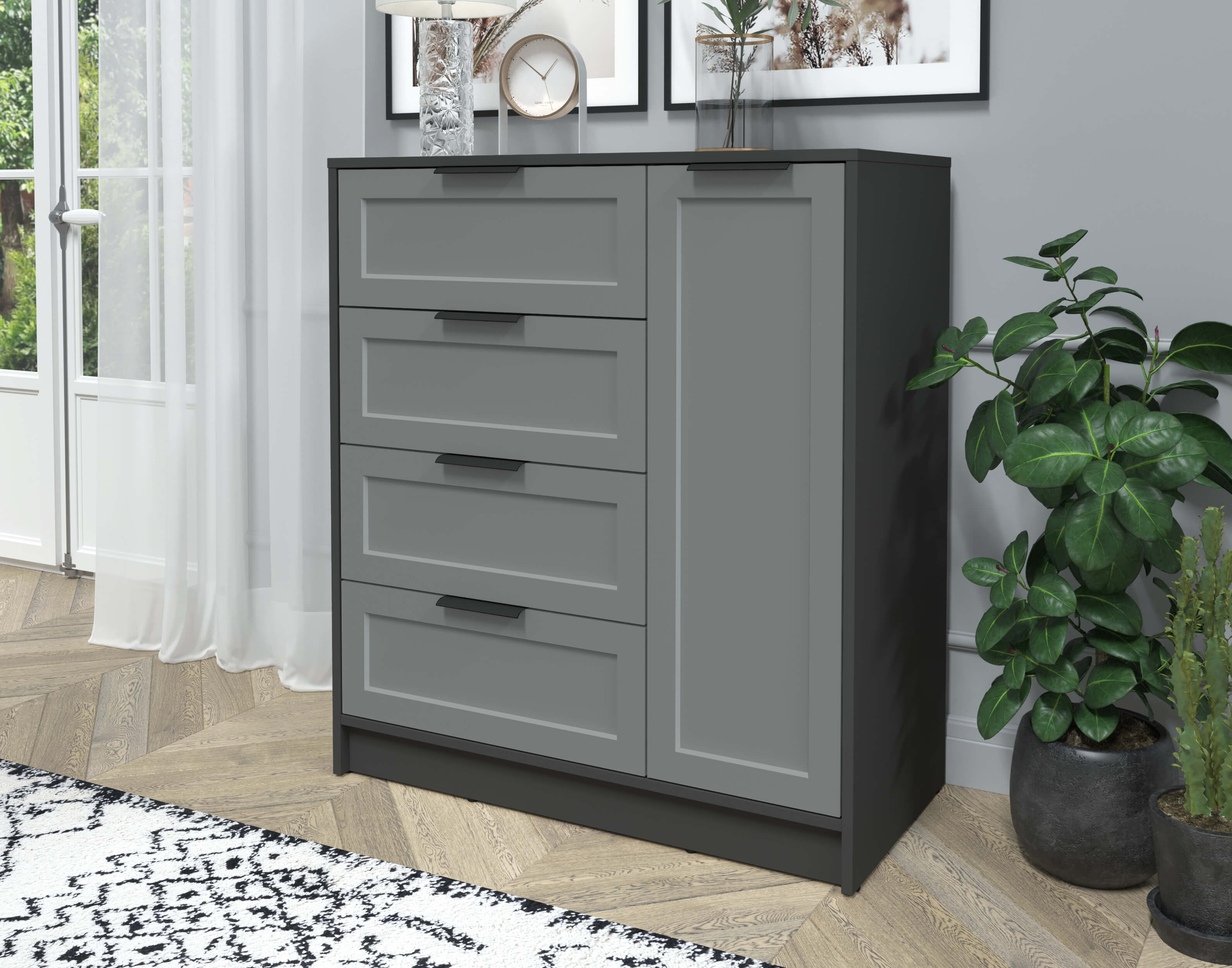 Тумба Тренд КТ-Т90 (Антрацит ЛДСП/ Серый ЛМДФ) Ш900 В1020 Г451