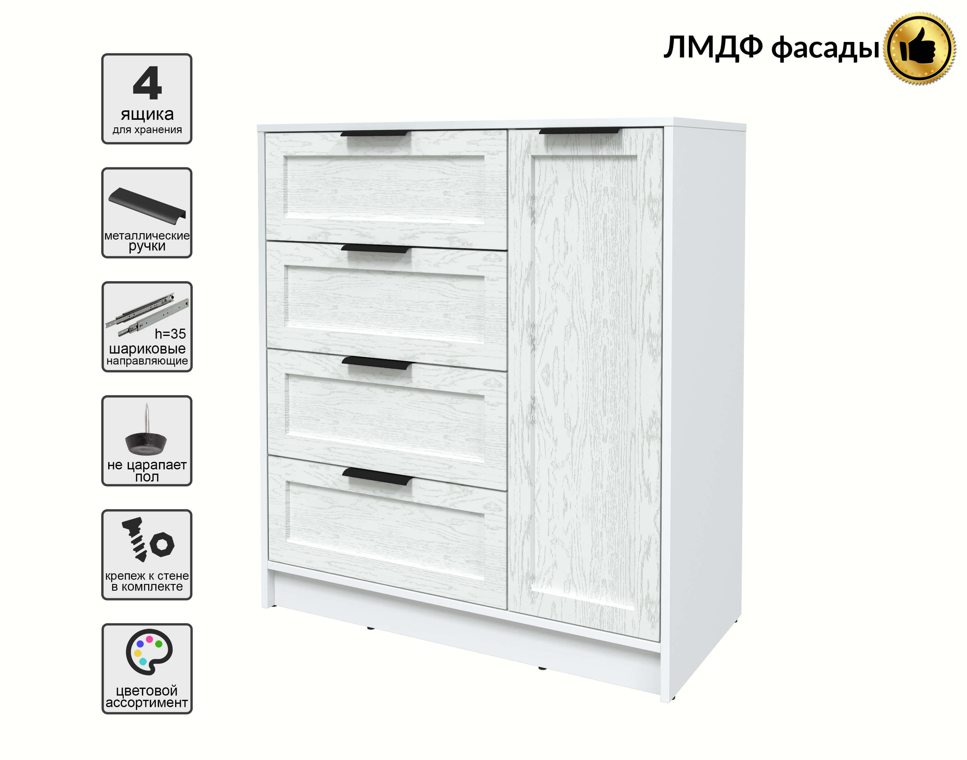 Тумба Тренд КТ-Т90 (Белый платинум ЛДСП/ Дуб полярный ЛМДФ) Ш900 В1020 Г451