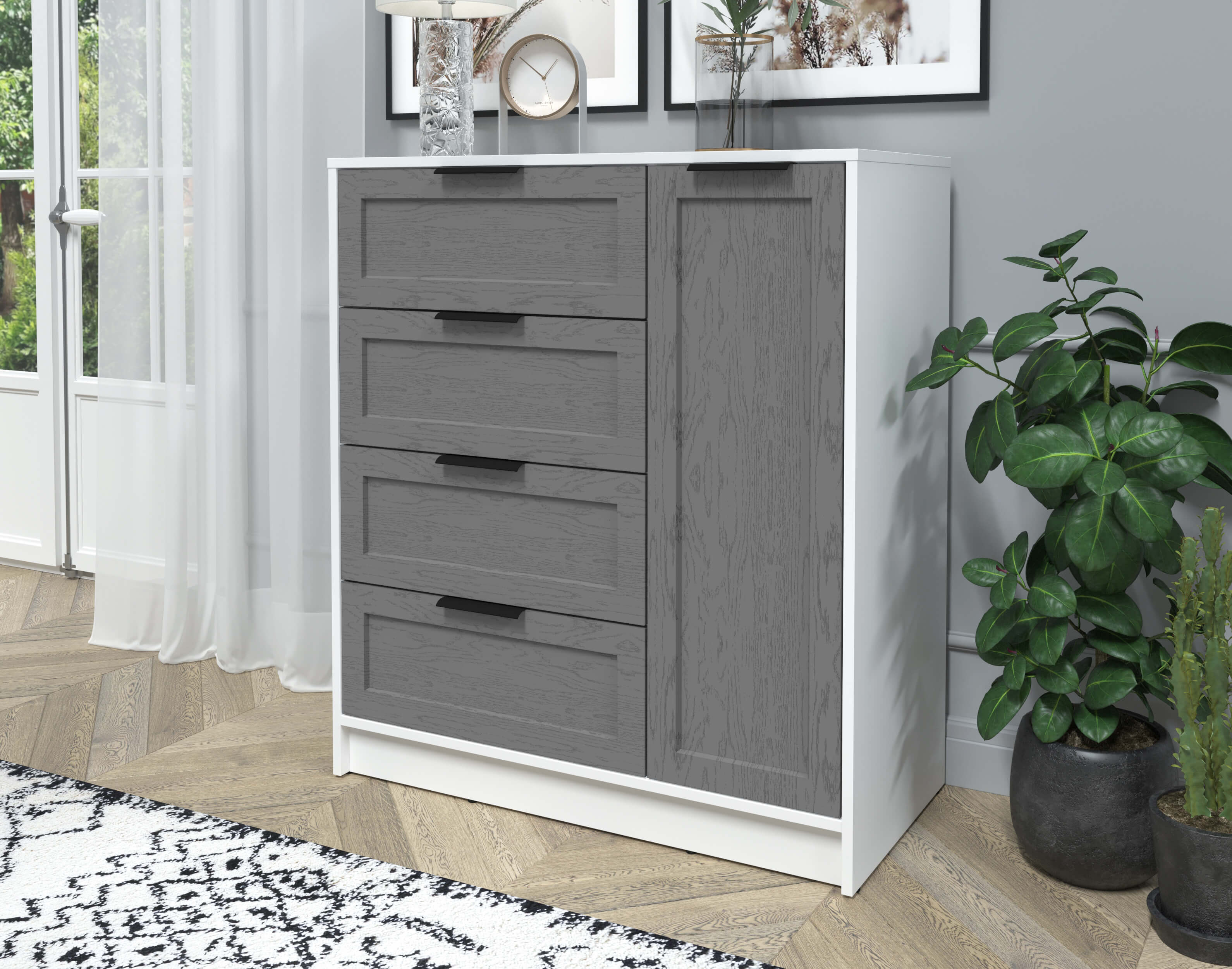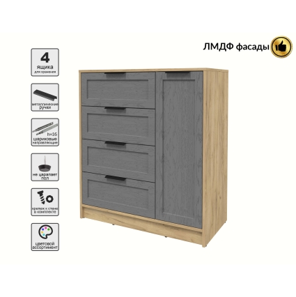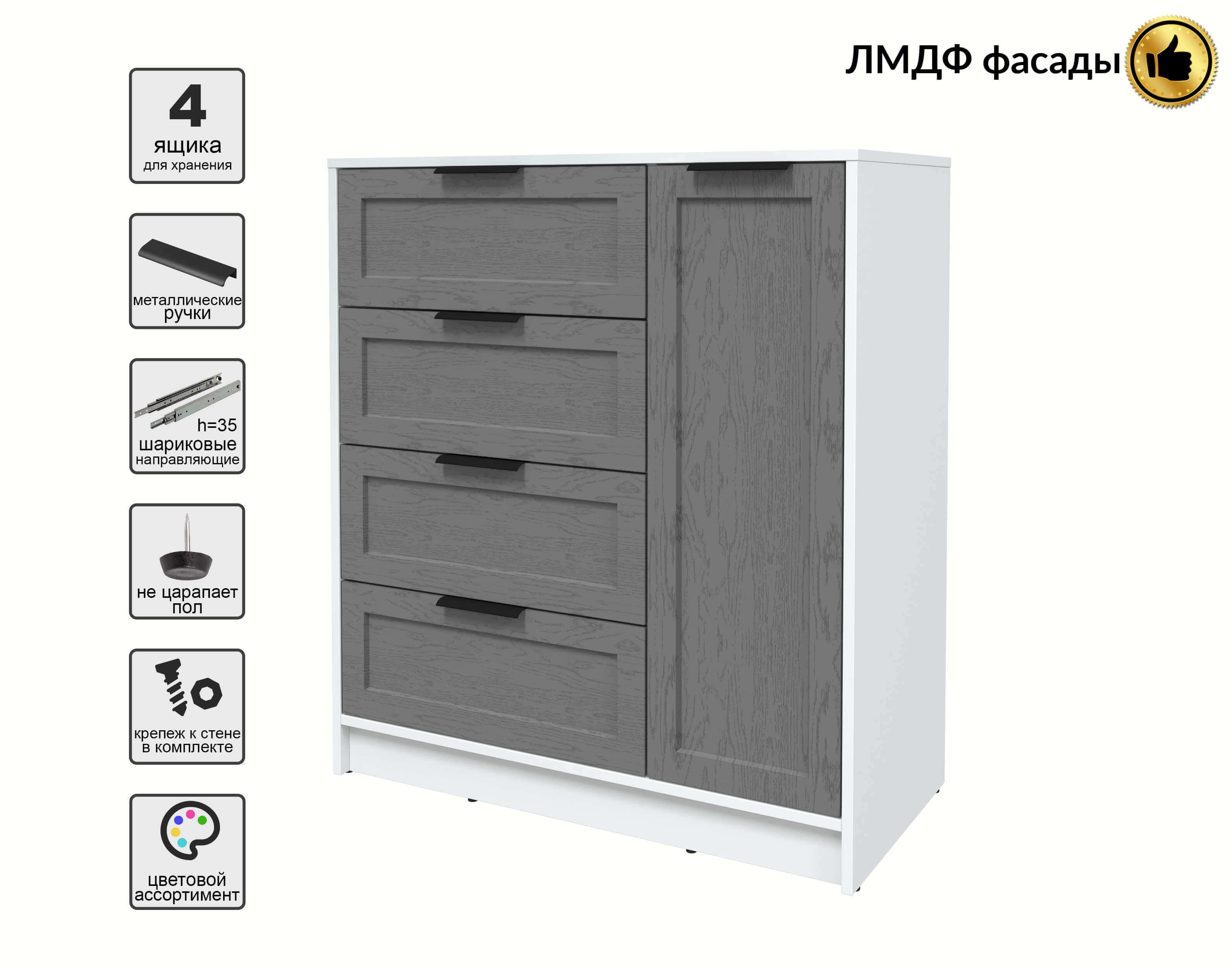 Тумба Тренд КТ-Т90 (Белый платинум ЛДСП/ Дуб серый ЛМДФ) Ш900 В1020 Г451