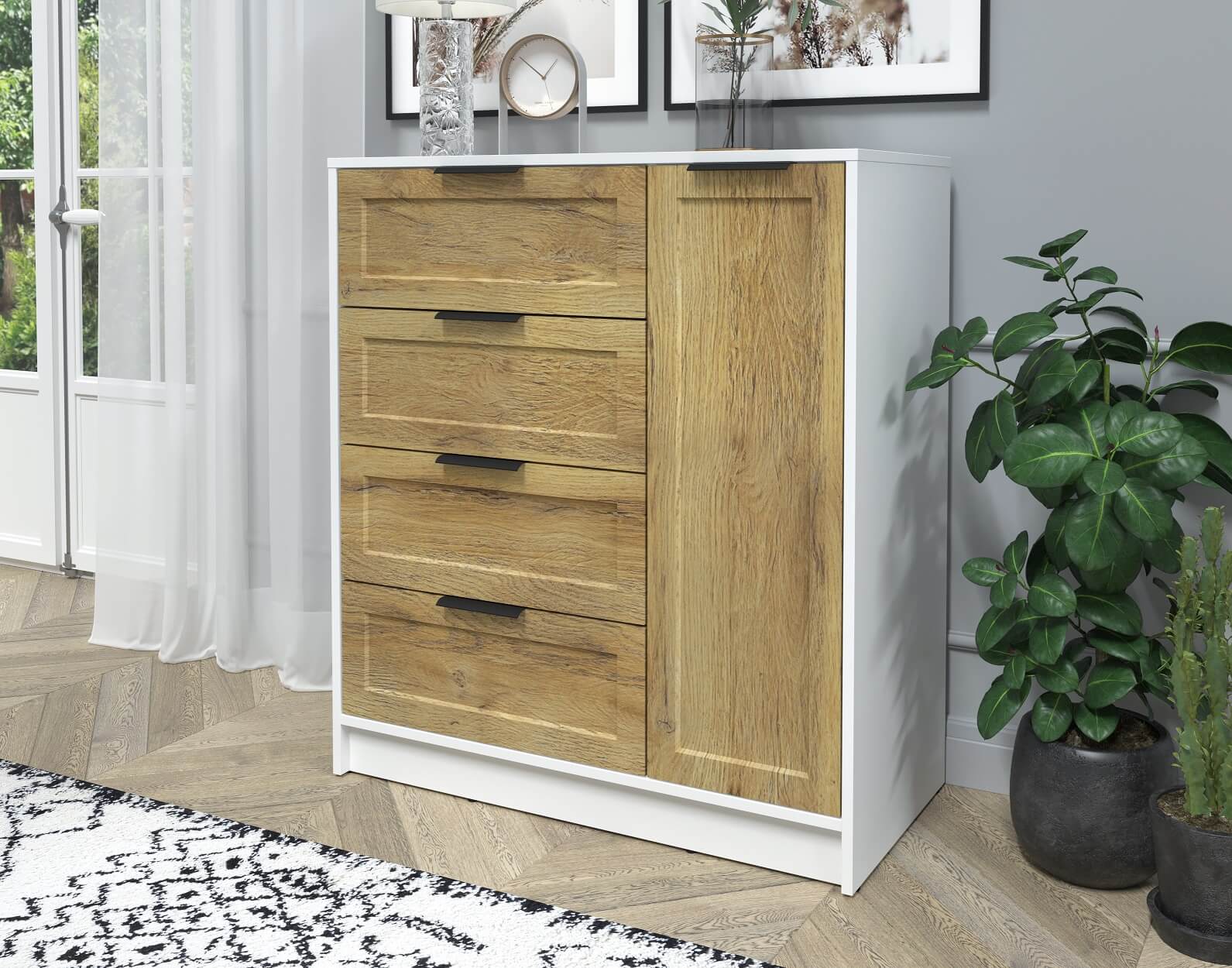 Тумба Тренд КТ-Т90 (Белый платинум ЛДСП/ Дуб вотан ЛМДФ) Ш900 В1020 Г451