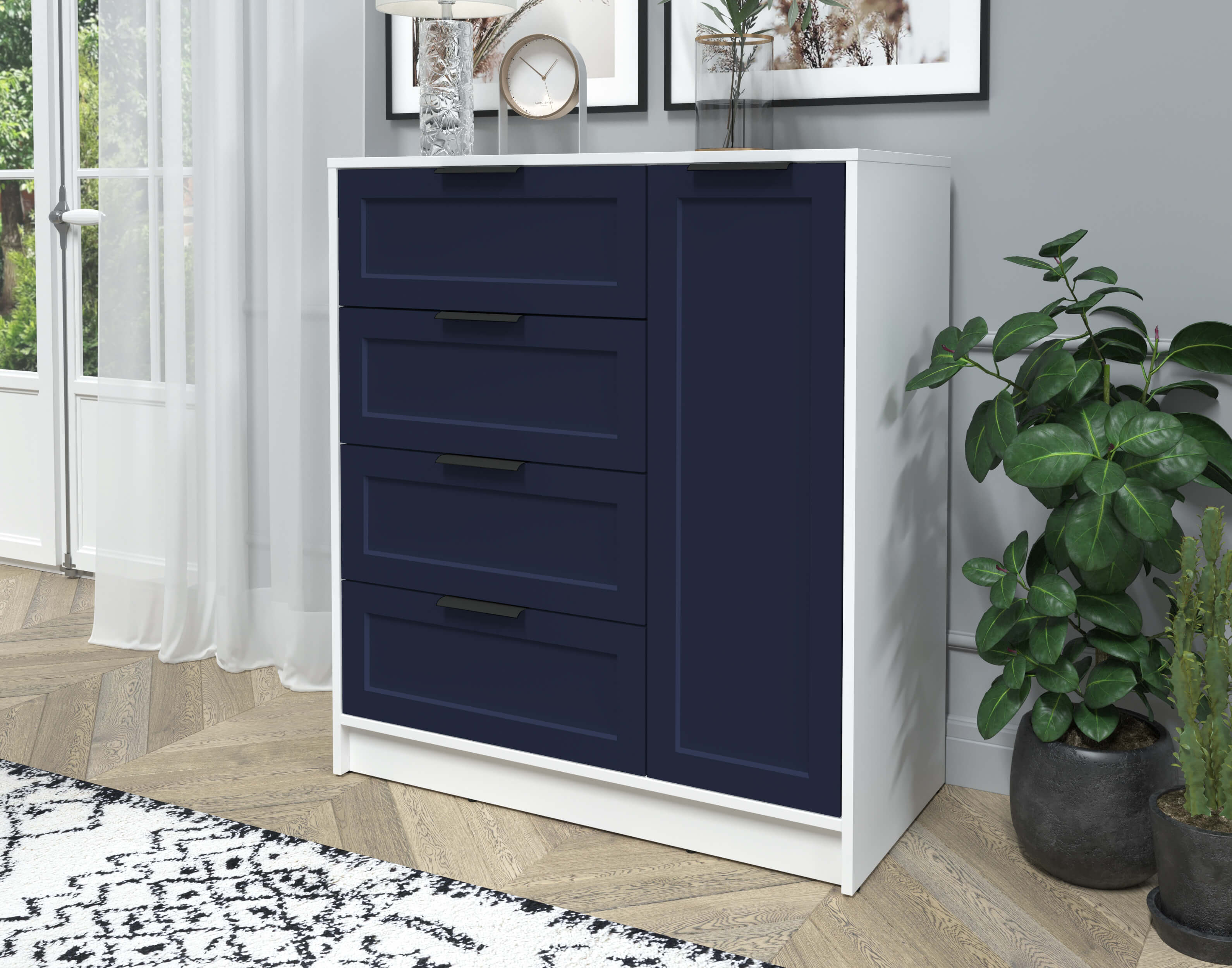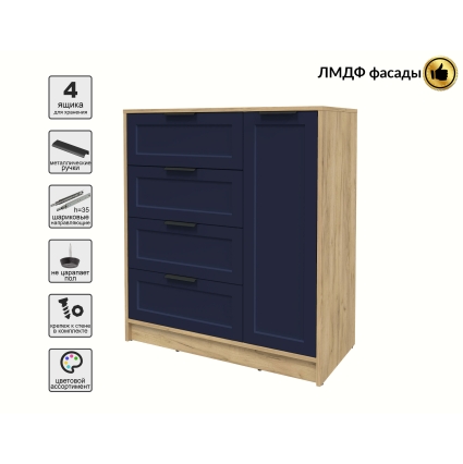 Тумба Тренд КТ-Т90 (Белый платинум ЛДСП/ Индиго ЛМДФ) Ш900 В1020 Г451