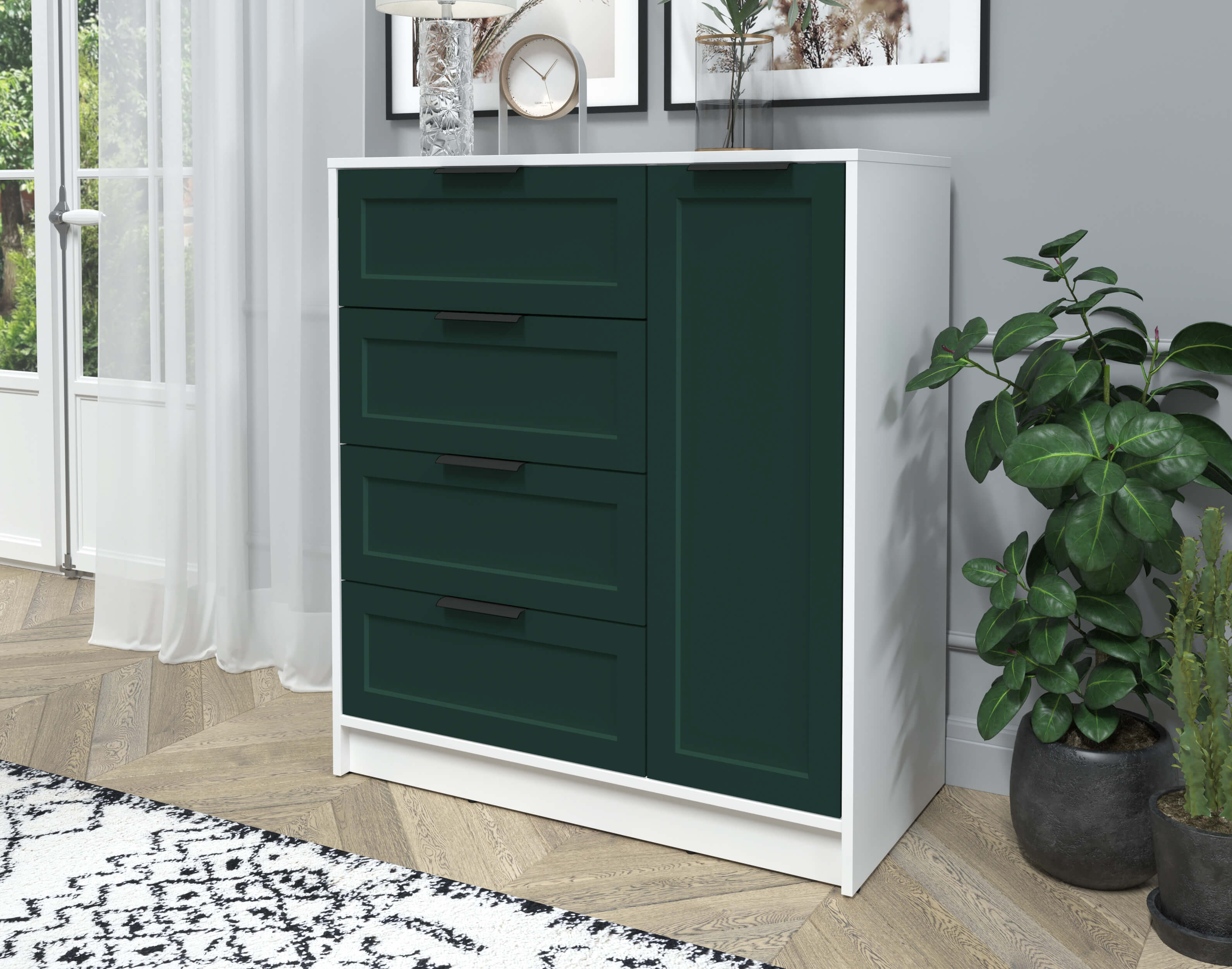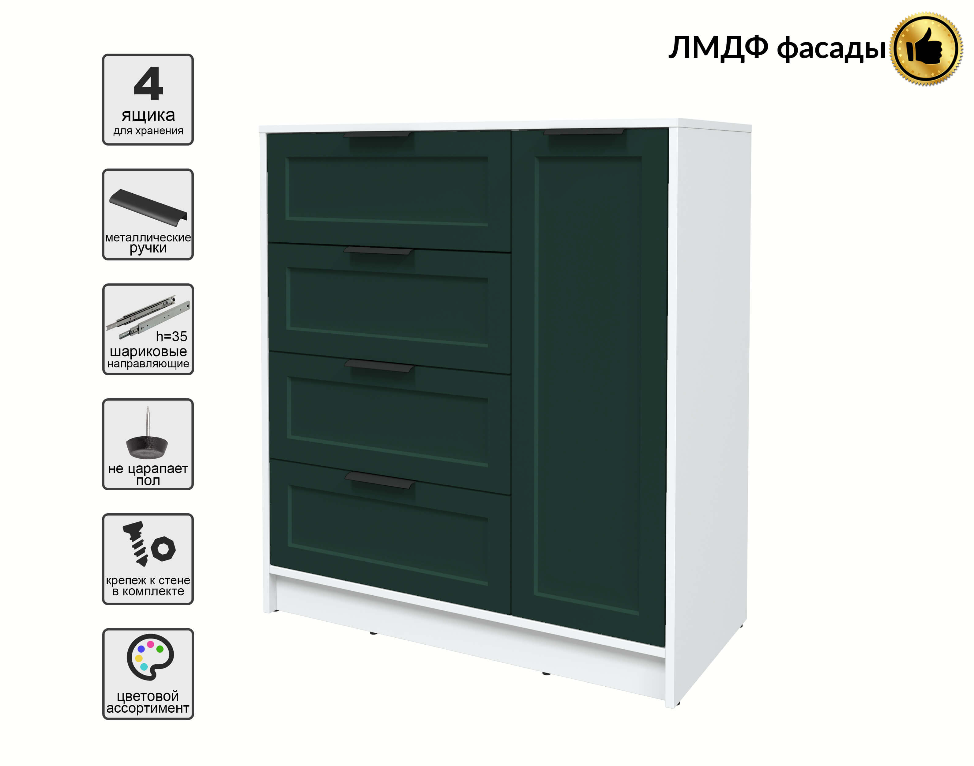 Тумба Тренд КТ-Т90 (Белый платинум ЛДСП/ Изумруд ЛМДФ) Ш900 В1020 Г451