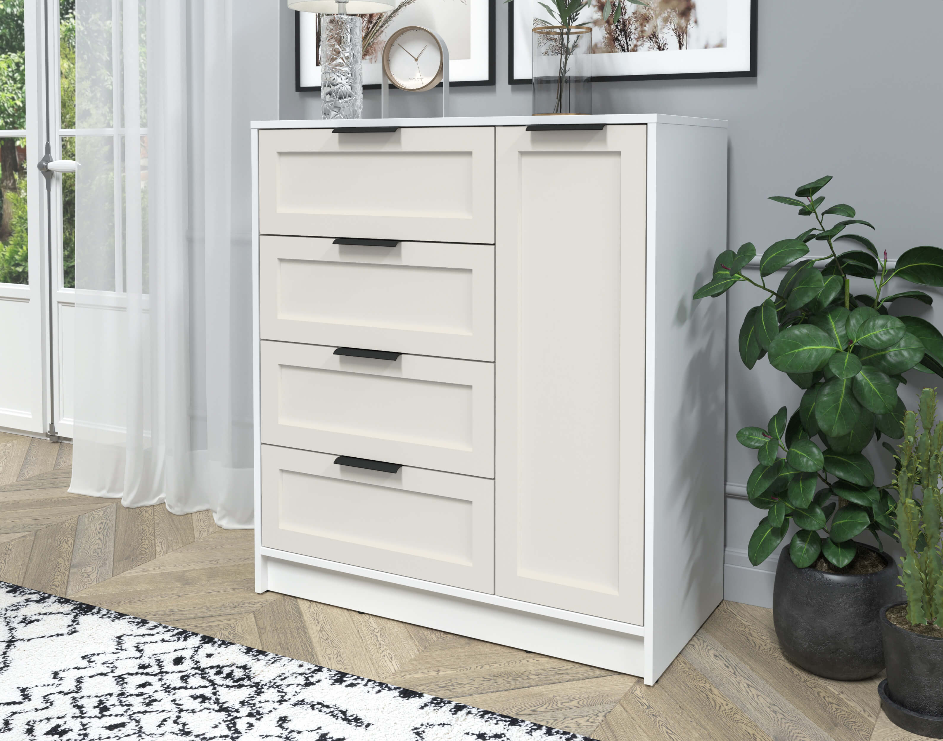 Тумба Тренд КТ-Т90 (Белый платинум ЛДСП/ Кашемир ЛМДФ) Ш900 В1020 Г451