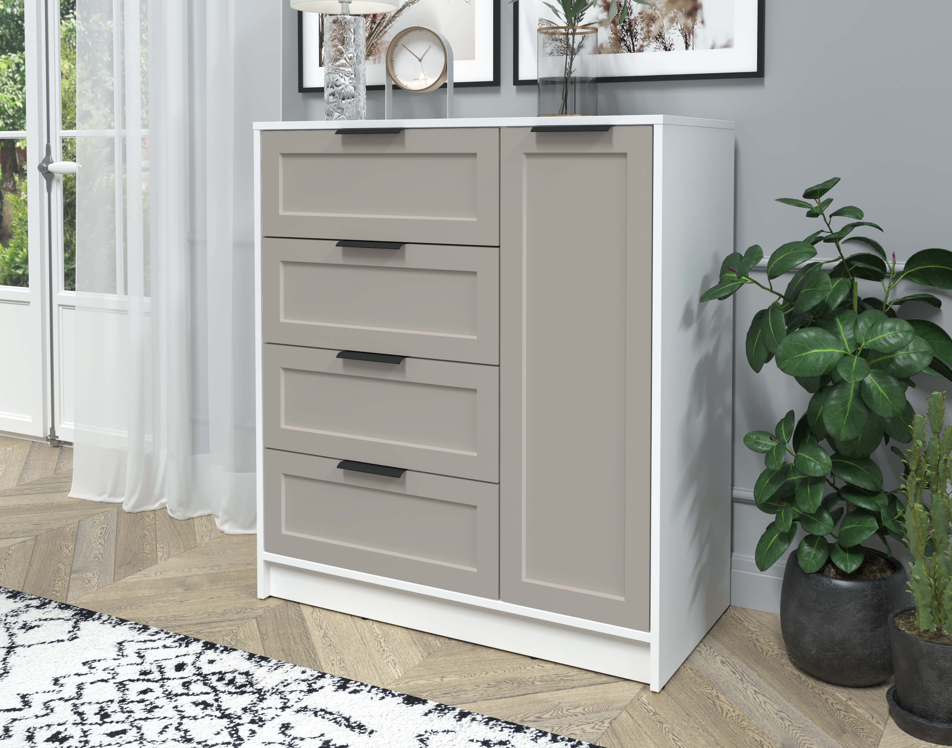 Тумба Тренд КТ-Т90 (Белый платинум ЛДСП/ Луна ЛМДФ) Ш900 В1020 Г451