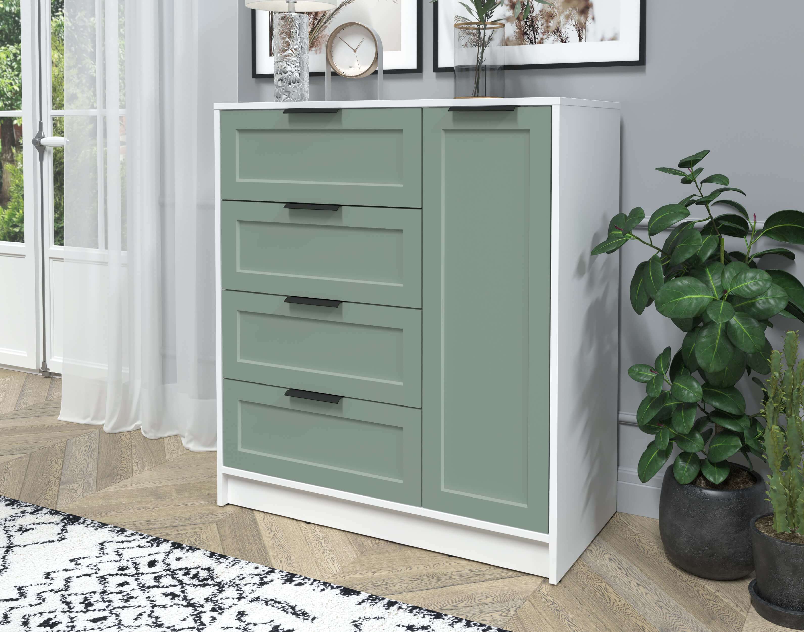 Тумба Тренд КТ-Т90 (Белый платинум ЛДСП/ Мята ЛМДФ) Ш900 В1020 Г451