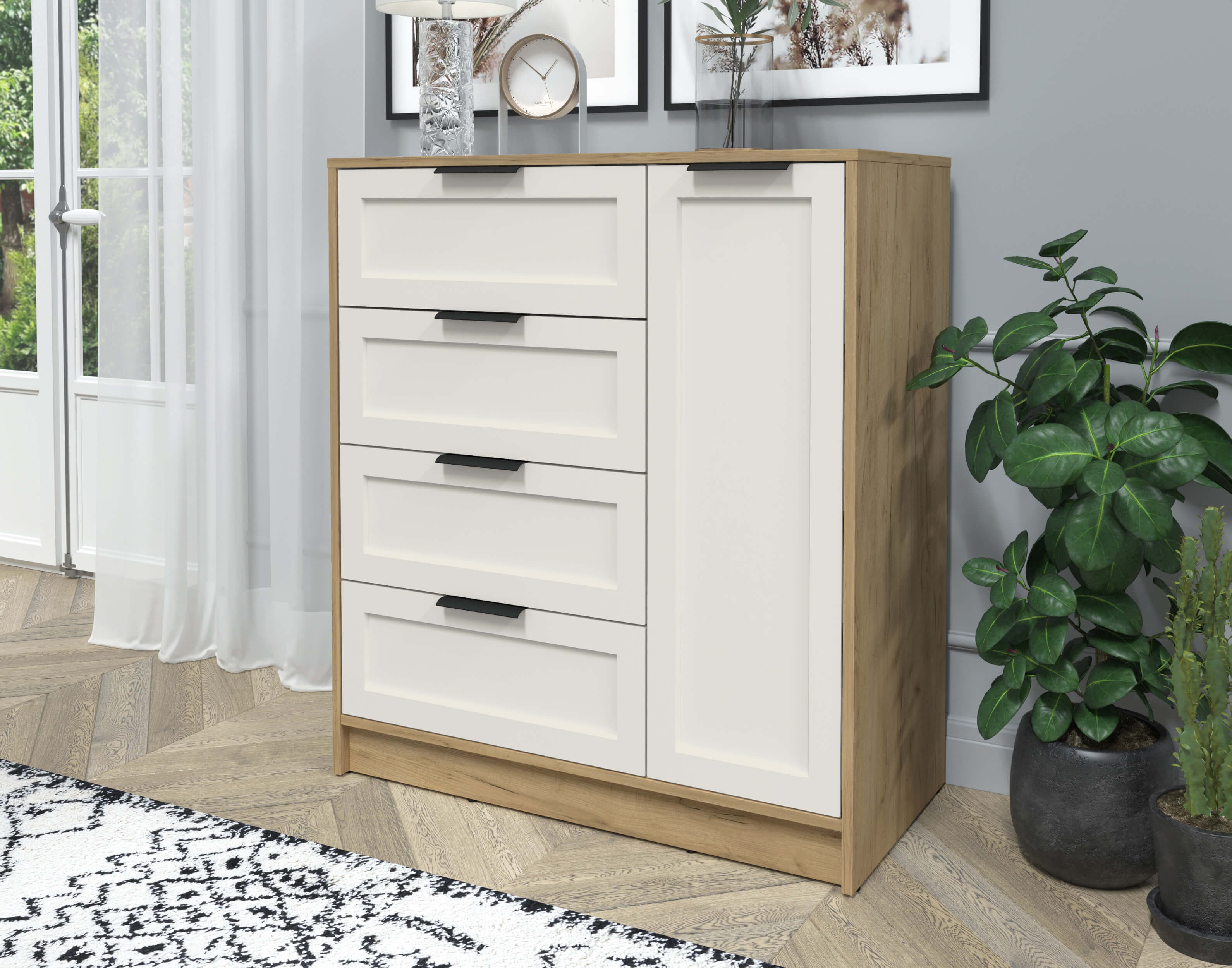 Тумба Тренд КТ-Т90 (Дуб золотой ЛДСП/ Кашемир ЛМДФ) Ш900 В1020 Г451