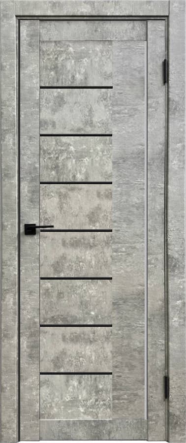 Дверь межкомнатная Амати 07 (Бетон светлый/ Черное стекло)